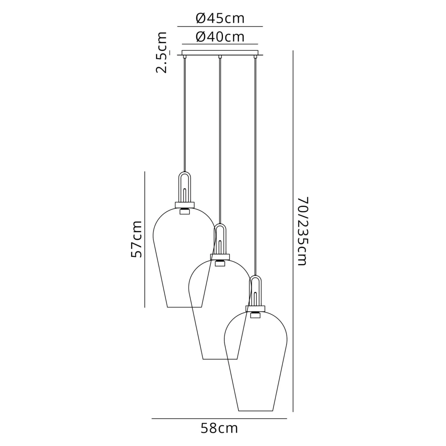 Illuminable by 3 E27 bulbs, the contemporary design features soft curved glass