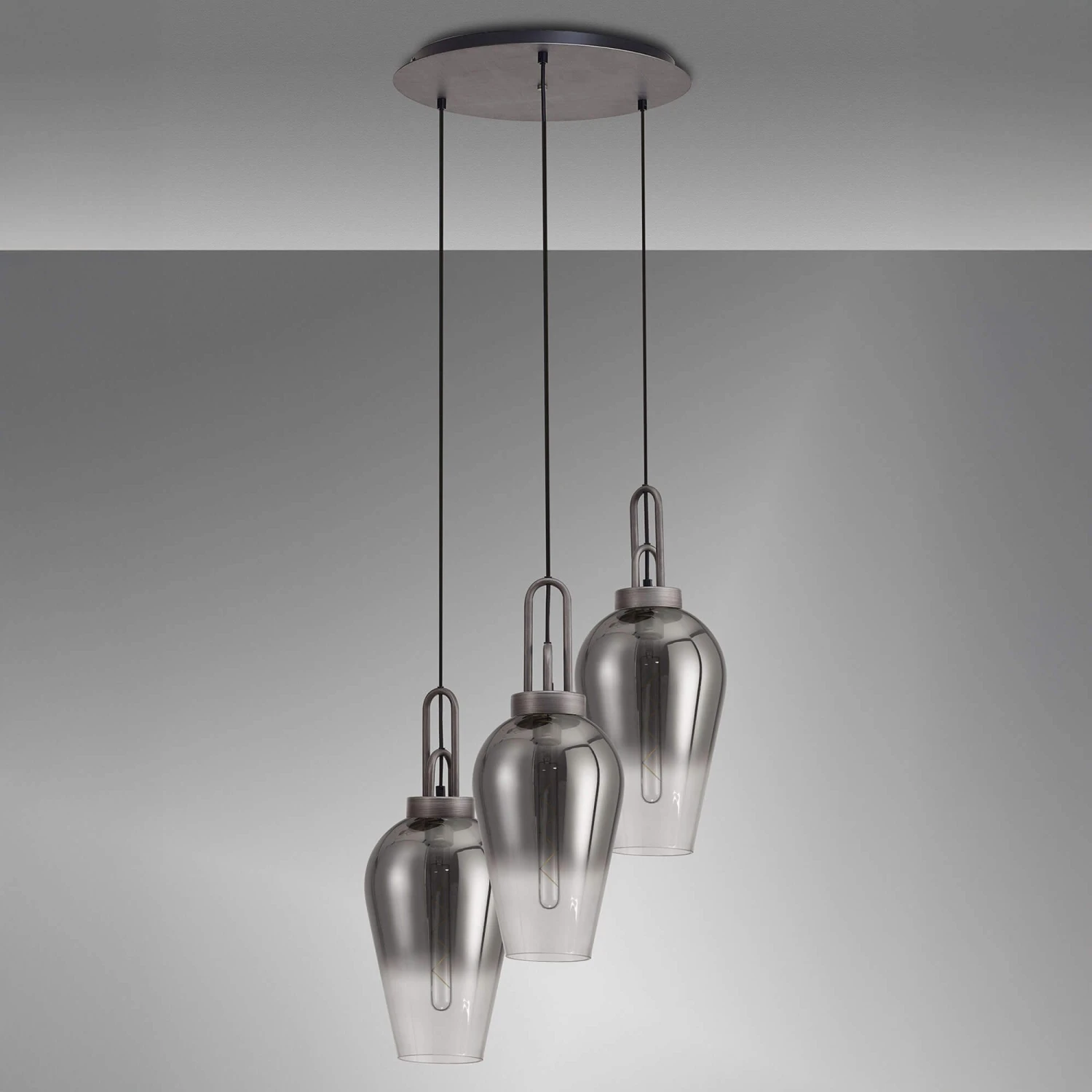 Hectar Pewter & Smoked Fade Glass 3 Light Pendant