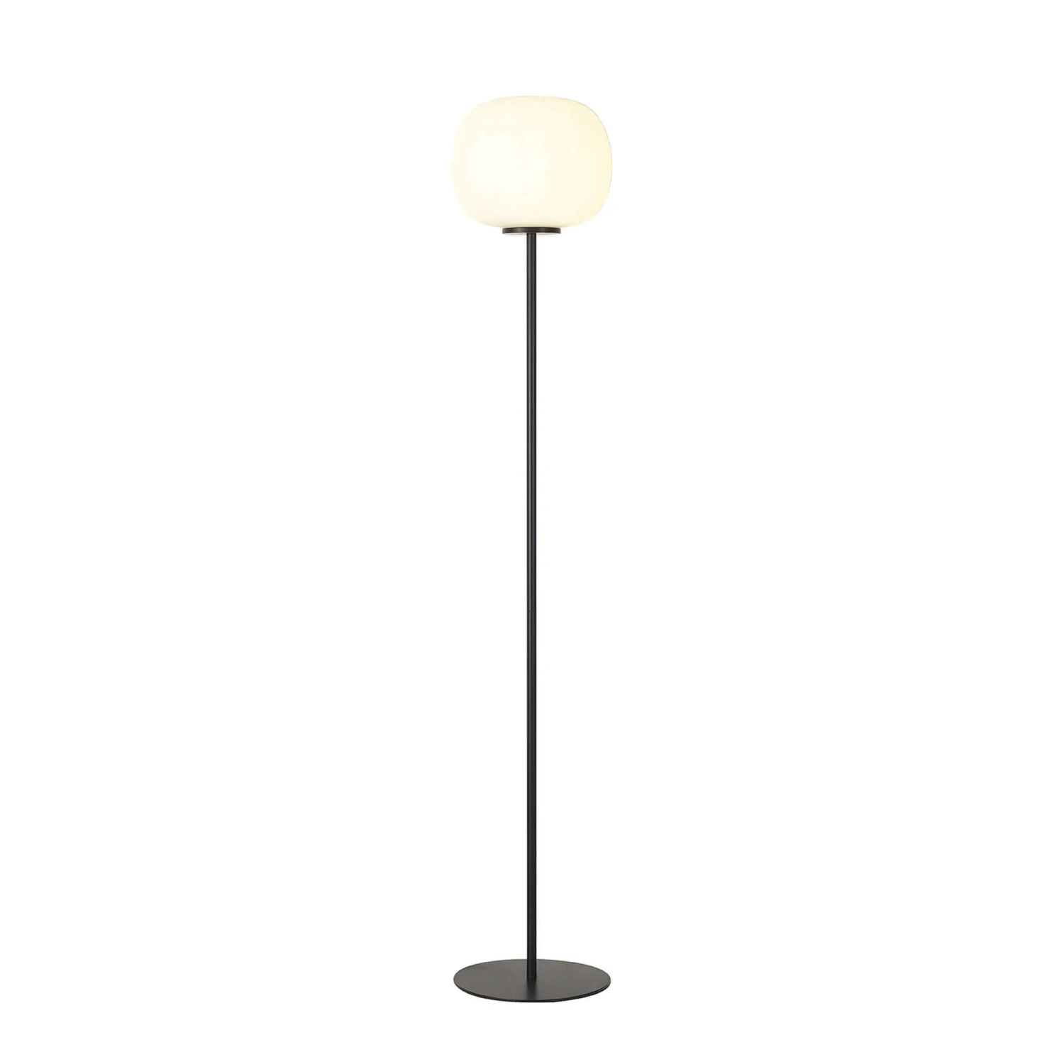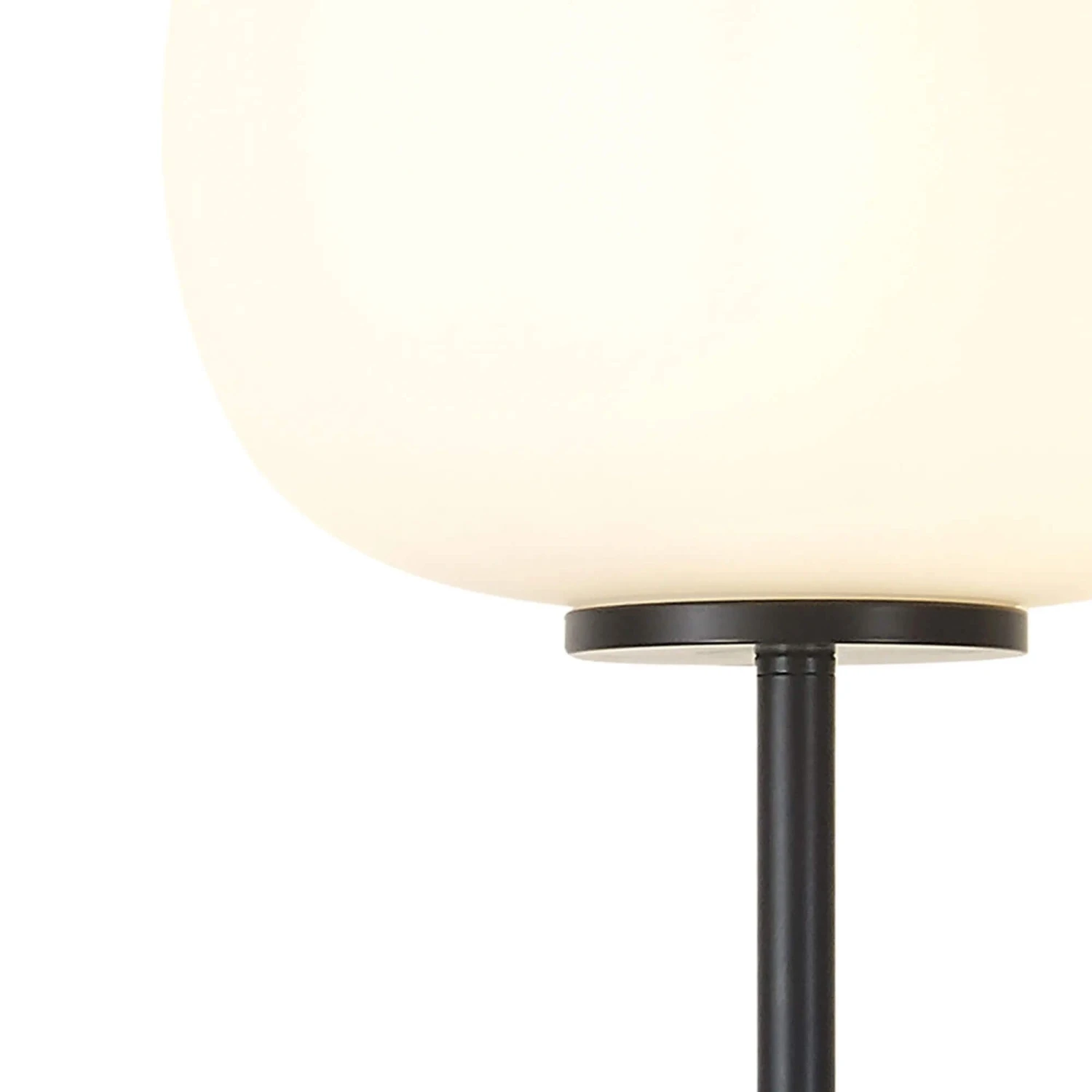 Showcase minimalist aesthetic with a soft, sculptural edge with this Henrik Matt Black & Frosted White Medium Oval Glass Floor Lamp. Illuminable by a required E27 LED bulb, this chic floor lamp features a medium oval ball shaped opal frosted white glass shade with a matt black iron tall stemmed body and round base, offering a striking contrast whilst providing a warm and inviting ambient glow.