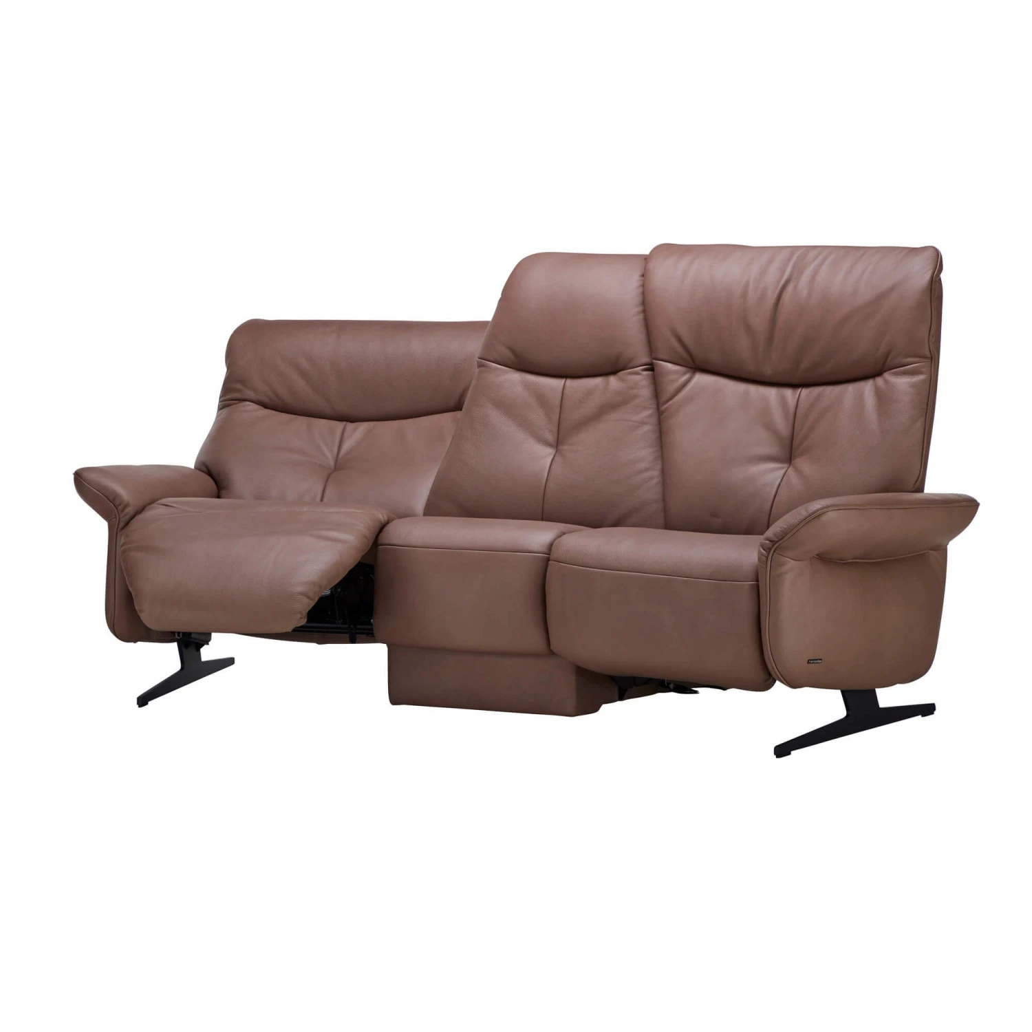 Featuring a unique trapezoidal design, the sofa offers both comfort and style, with its plush soft foam cushioning and piped seaming, which contours the edge of the sofa, adding a touch of elegance. The individually adjustable footrests and headrests allow you to get into your ideal comforting position while the fold-down centre table, finished in a complimenting light oak, provides you with a convenient space to sit drinks and snacks.