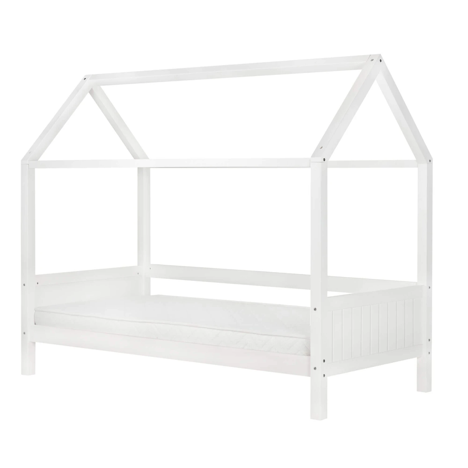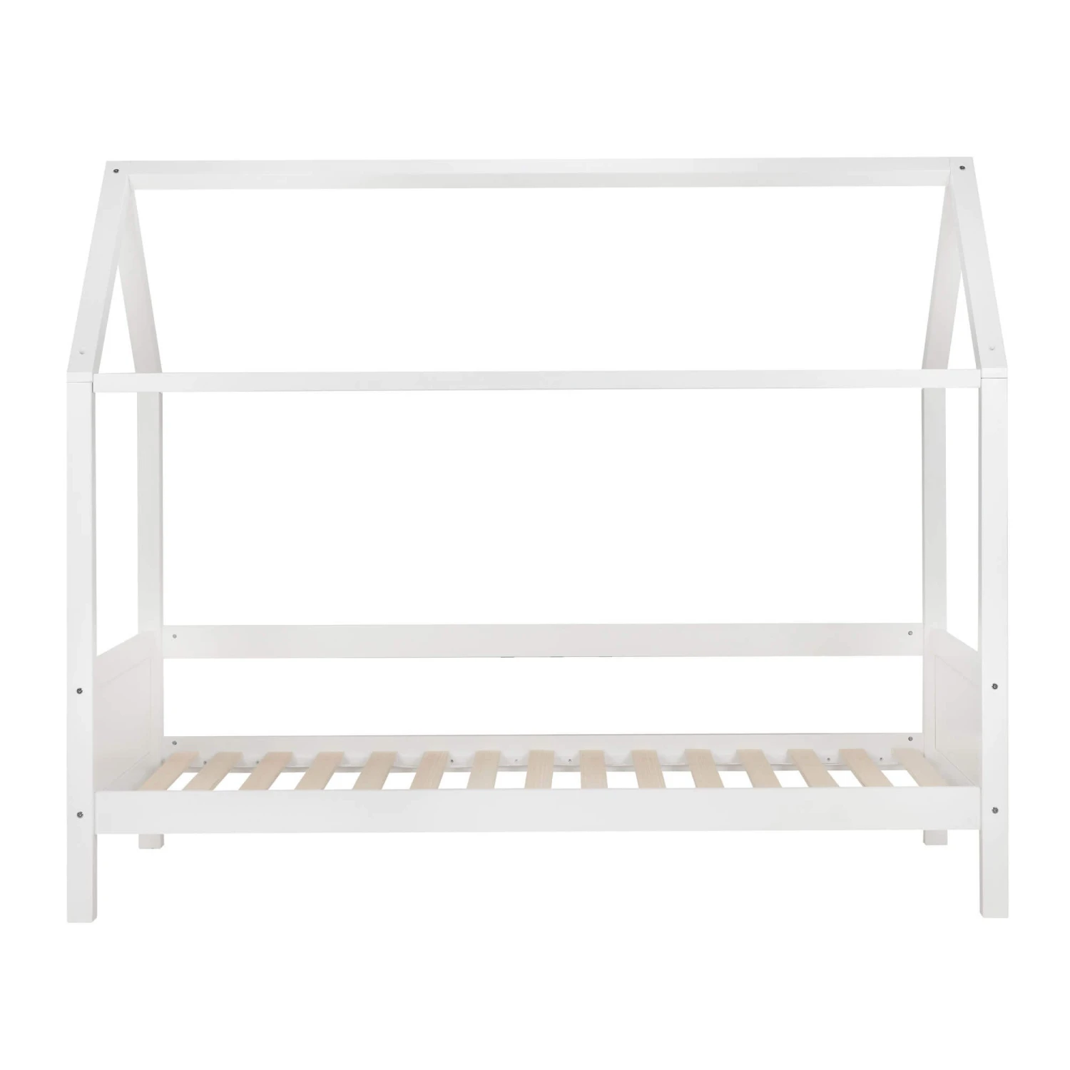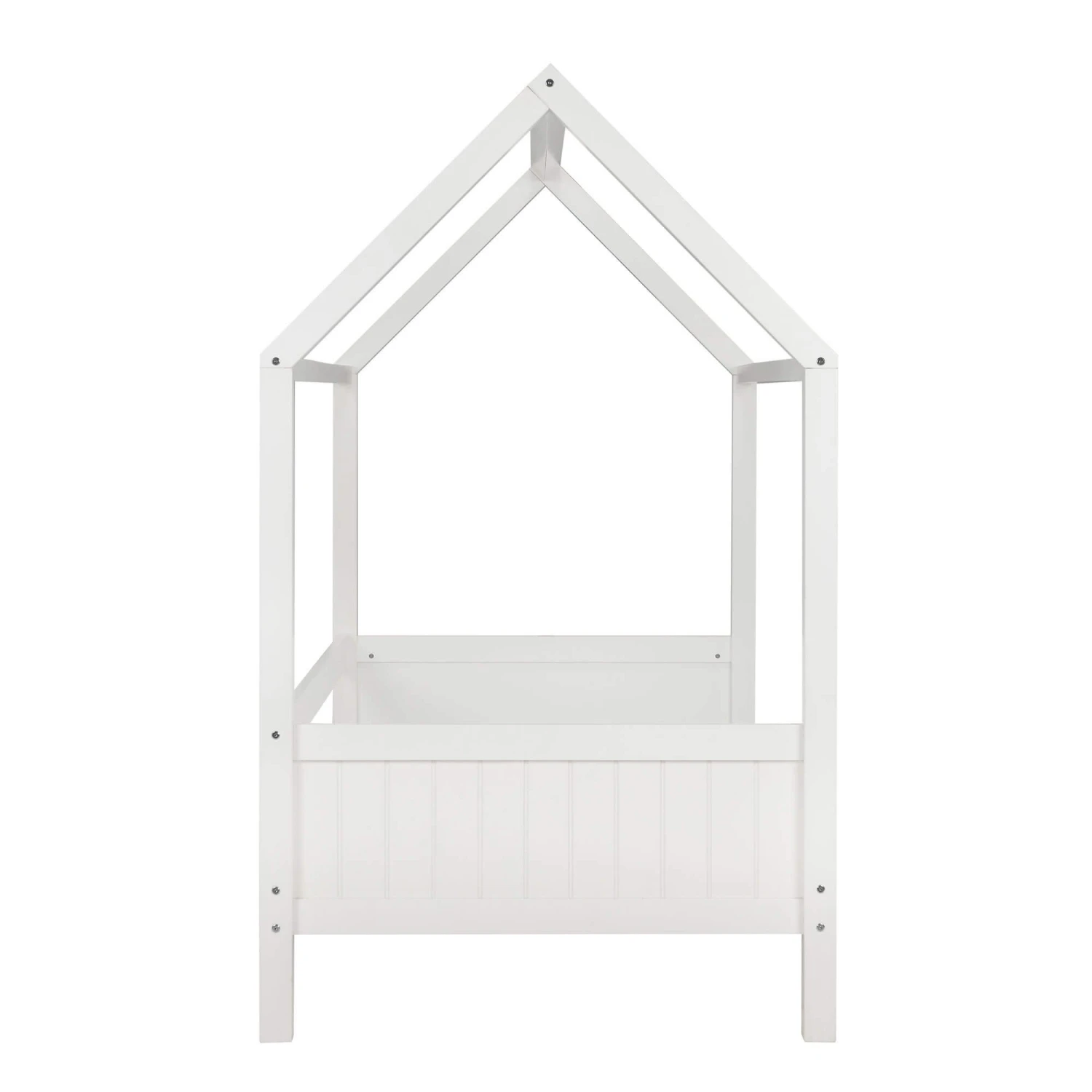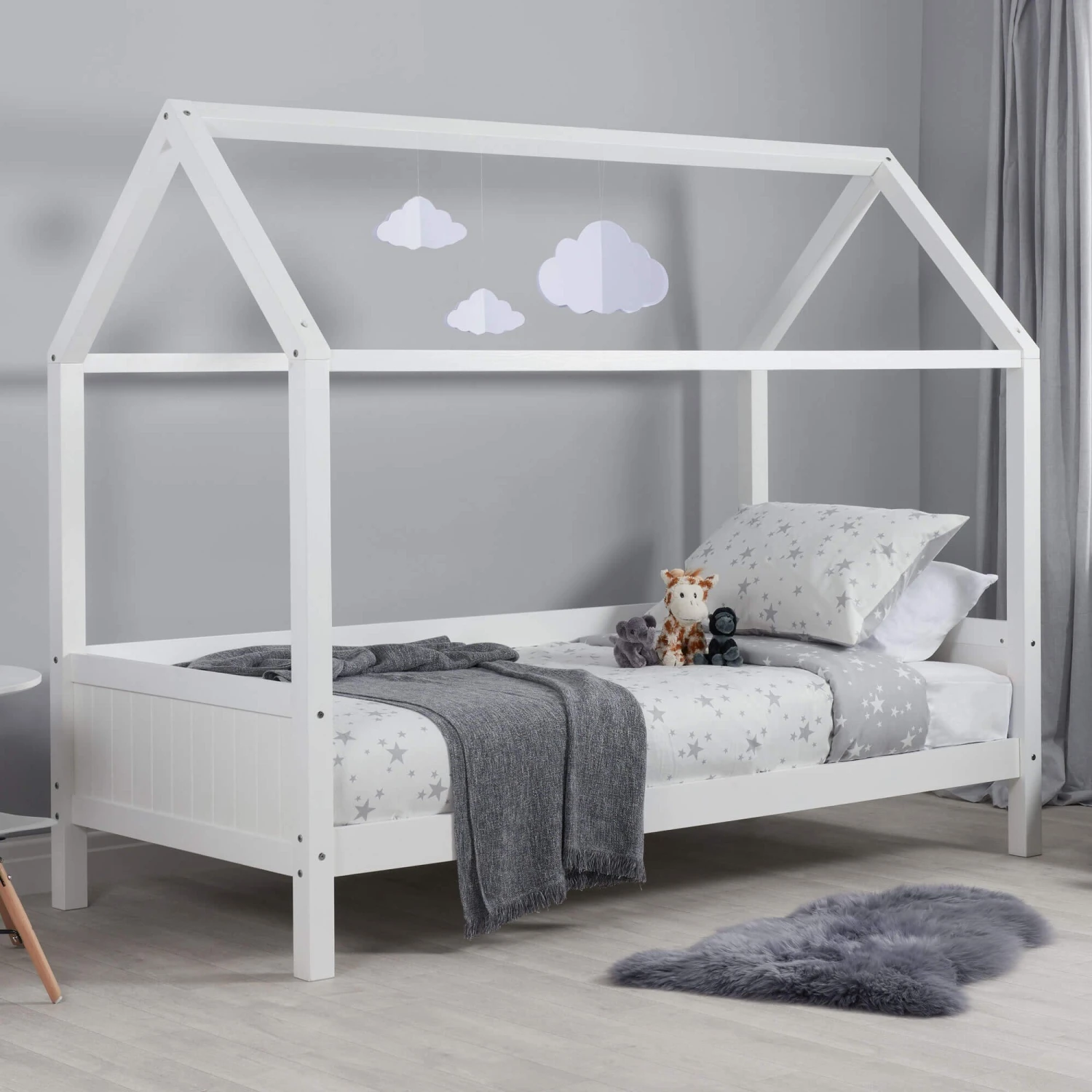 Bring an element of fun to your child’s bedroom, whilst encouraging independence with their very own house themed bed. This beautiful pine bed frame in the shape of a house has a white painted finish and can be dressed to suit a variety of décor themes, bringing your little one’s bedroom and imagination to life. This frame has a solid slatted base for firmer support, allowing air to circulate beneath the mattress, suits a standard UK Single mattress and has a maximum weight load of 100kg.