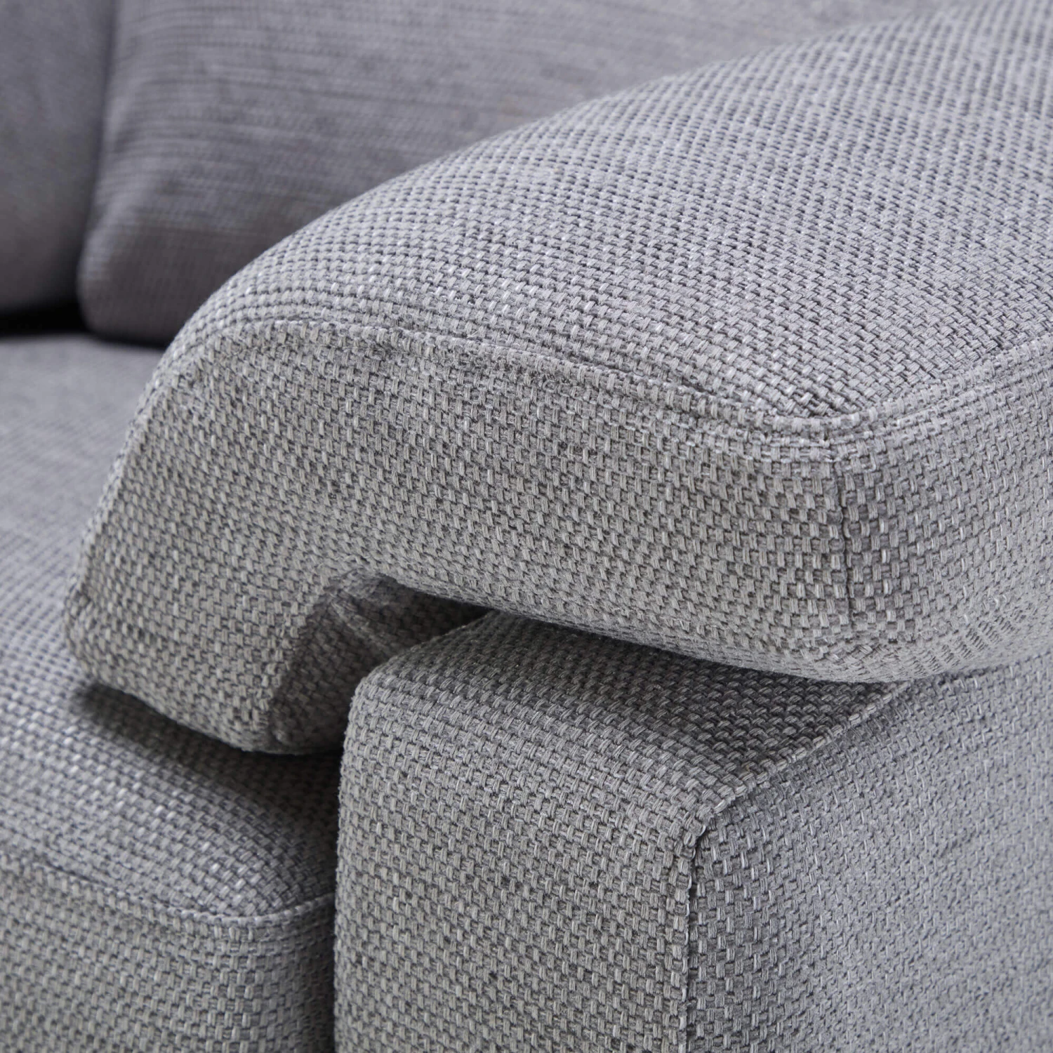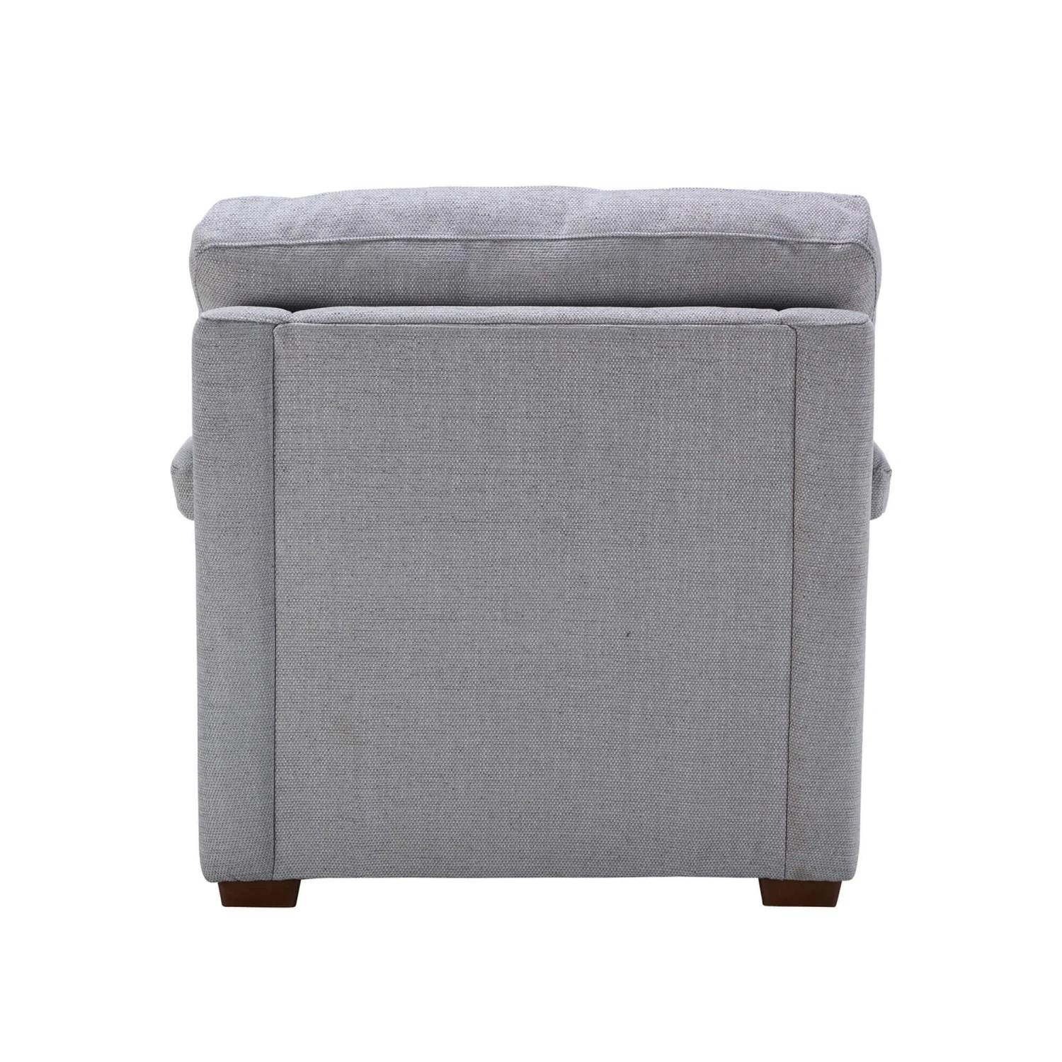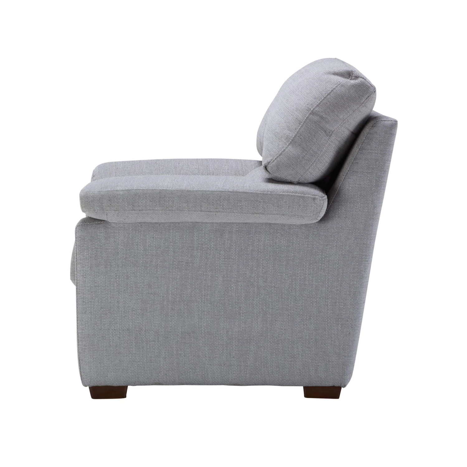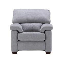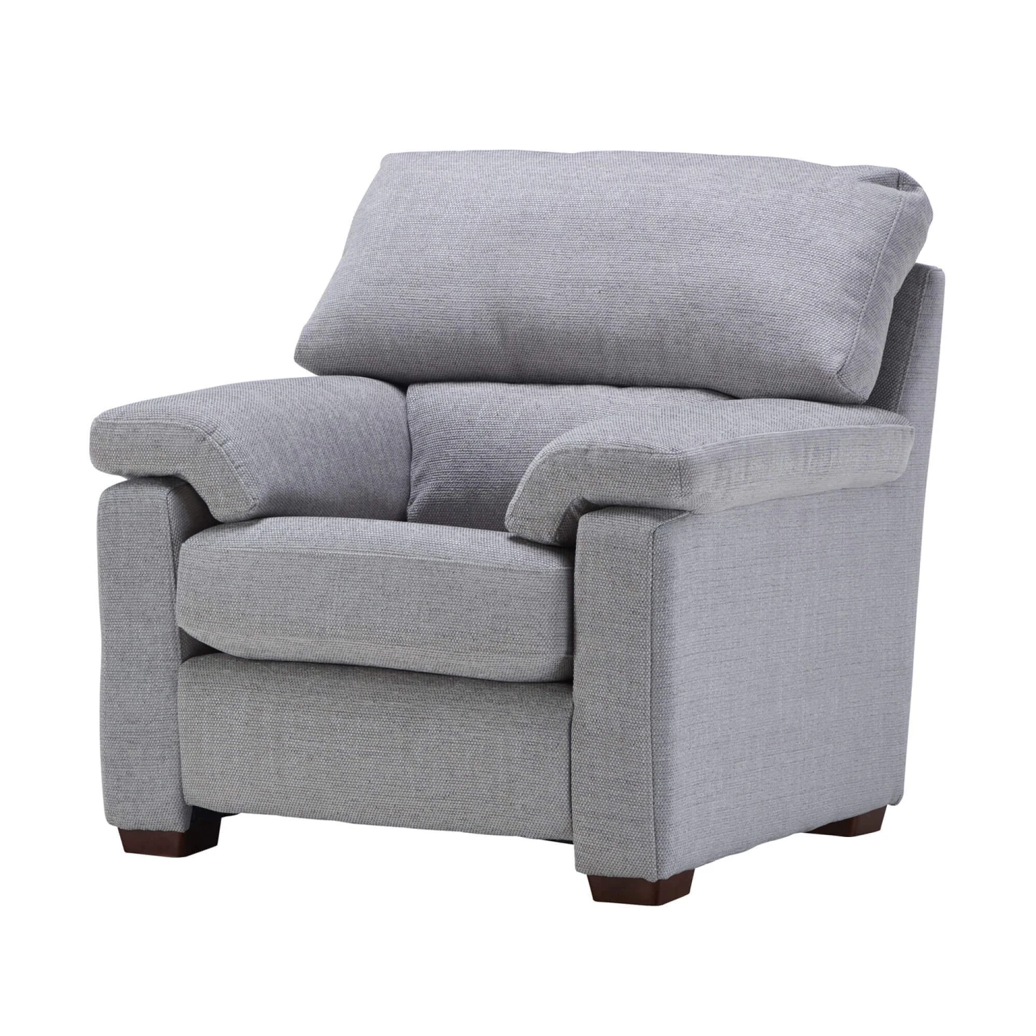 The Houston Grey Fabric Armchair is welcoming, distinctive and bold. Upholstered in a grey fabric, the Houston features sloped, padded armrests, generously padded cushions and dark wooden feet, creating a sophisticated and high quality piece.