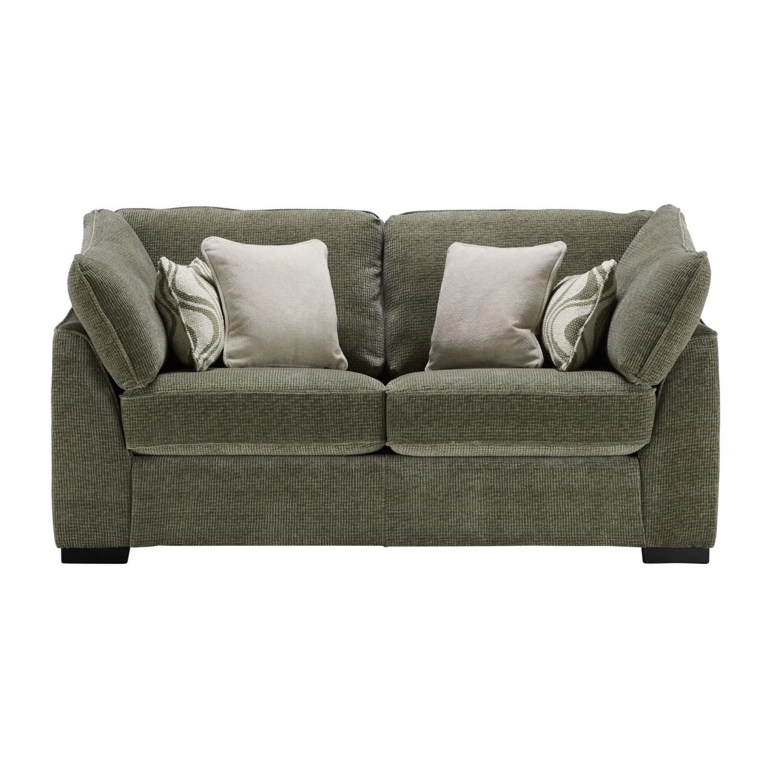Accompanied with its sage green coloured fabric and beautifully formed silhouette, combining sleek lines with gentle slopes and characterful curves; the Imogen is sure to fit seamlessly into any contemporary home, with its effortlessly elegant style. The Imogen 2 Seater Sofa comes complete with two oyster plain scatter cushions and two thyme green patterned bolster cushions.