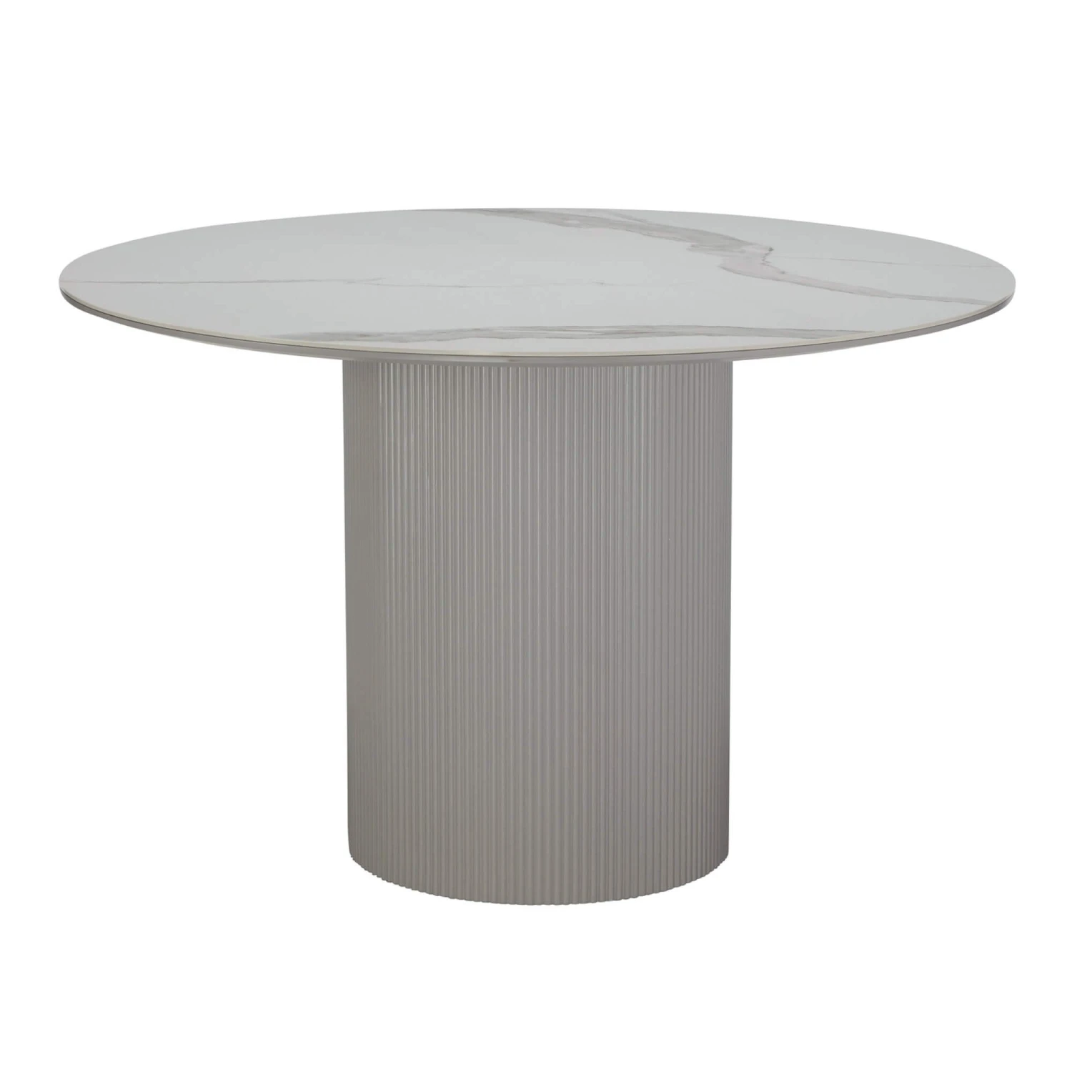 The reeded, cylindrical base lends this table its attractive, industrial-urban flair and is finished in a matte light grey for contrast. Accompanied with its clean lines and overall simplistic style, the Irina Dining Table is well suited to many interiors and colour schemes and is sure to transform your home with its refined, timeless, minimalist style.