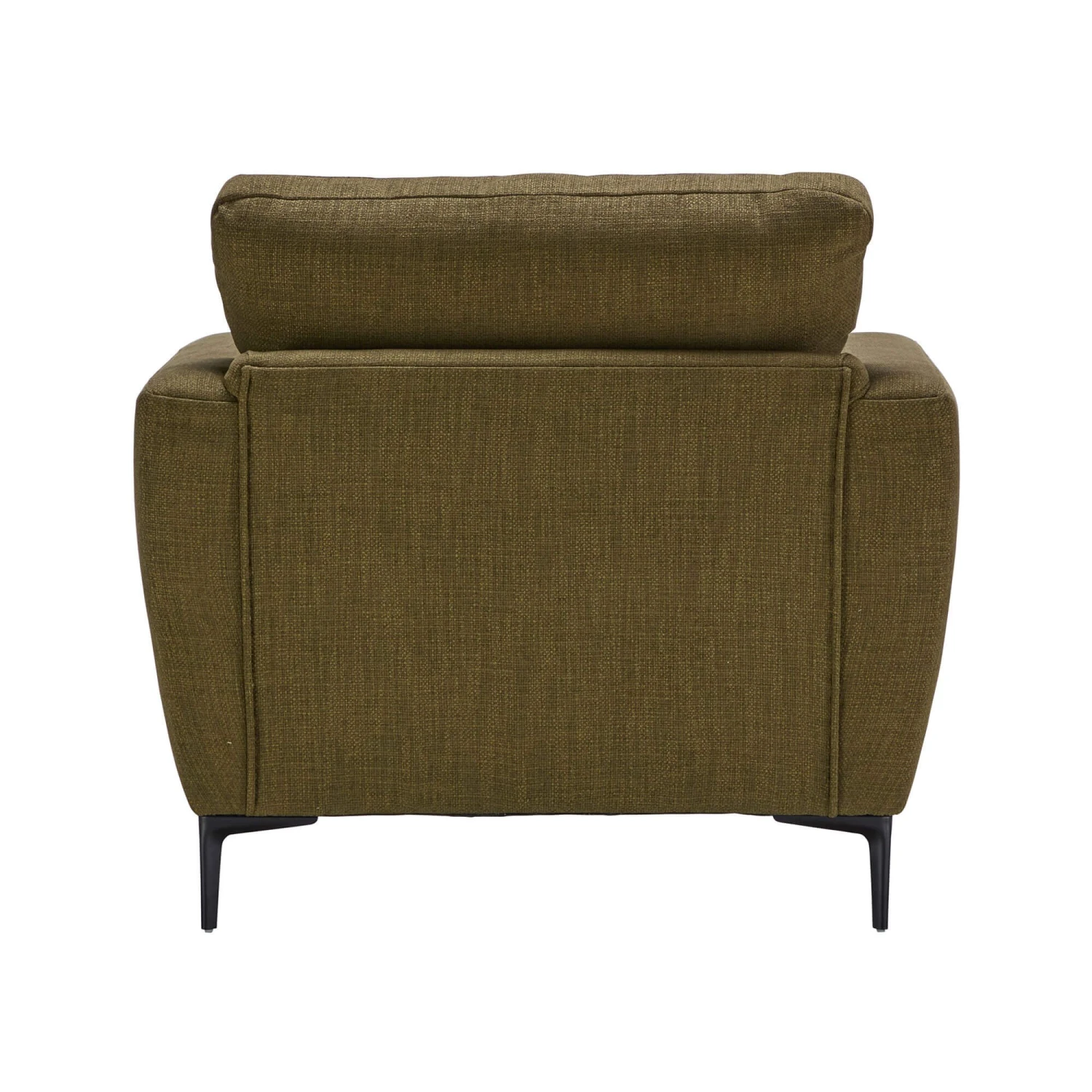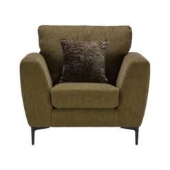 Upholstered in a muted olive green fabric, the Isabella has matt black metal legs for a modern touch and geometric patterns inspired by ancient motifs, symbolising the connection between the earthy and spiritual. The arm’s gentle curves mimicking nature’s flowing forms, echoing Peru’s rivers and mountains. Heavily textured pillows add depth, reminiscent of traditional handwoven blankets.