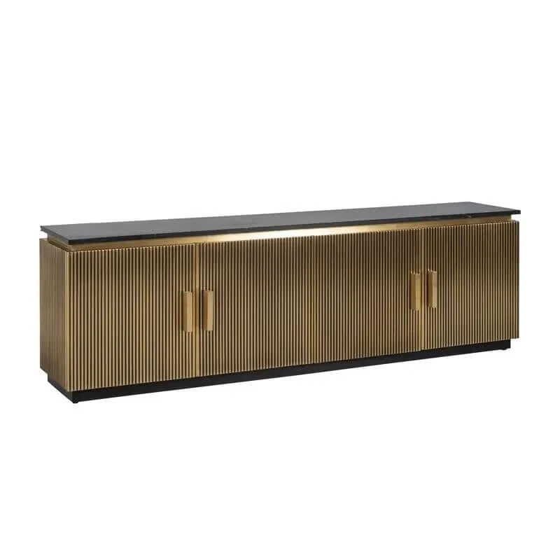 This Ivette TV unit in a luxurious gold boasts a generous H61cm x W200cm x D45cm size, perfect for storage while looking great in your home. Made with marble and brass touches for a high quality finish, adding a touch of elegance to where ever you choose to place this piece.