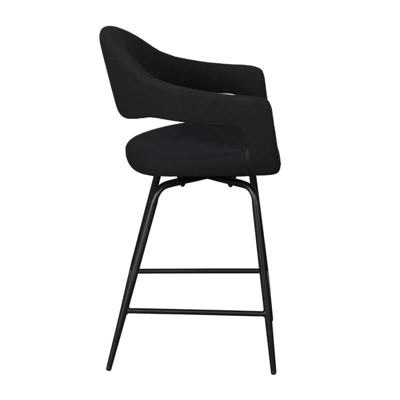 The Copenhagen counter stool complements a wide range of home aesthetics the black boucle fabric adds a soft touch while the complimenting matte black legs create a luxurious monochromatic contrast.