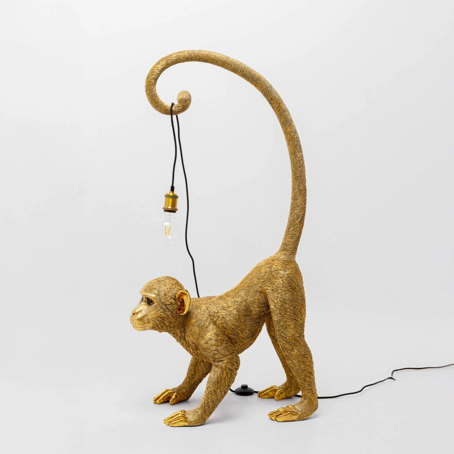 The Monkey Dance Floor Lamp is a cheeky and characterful addition to any interior, bringing a playful charm that instantly enlivens your space. This delightful piece features a mischievous monkey with piercing black eyes and shiny gold hands and feet, expertly crafted from polyresin with an elegant antique gold finish. Its unique design captures a sense of fun and whimsy, making it a perfect decorative accent for those who appreciate quirky yet sophisticated home accessories.