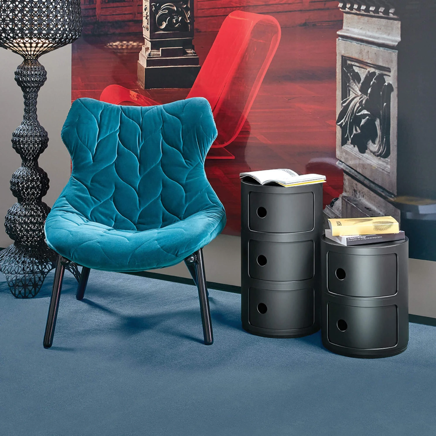 A timeless furnishing classic designed with flexi-living and functionality in mind, the Kartell Componibili Black Recycled 2 Drawer Unit offers versatility with its adaptable design, which is comprised of 2 modules that can be stacked or used separately, so you can make the most of the space you have available. Each module features a sliding drawer front, so the internal storage section can be easily accessed. The simplistic round shape is ultra-modern in appearance and finished in a soft touch, black matte finish that will translate well with many décors and colour schemes.