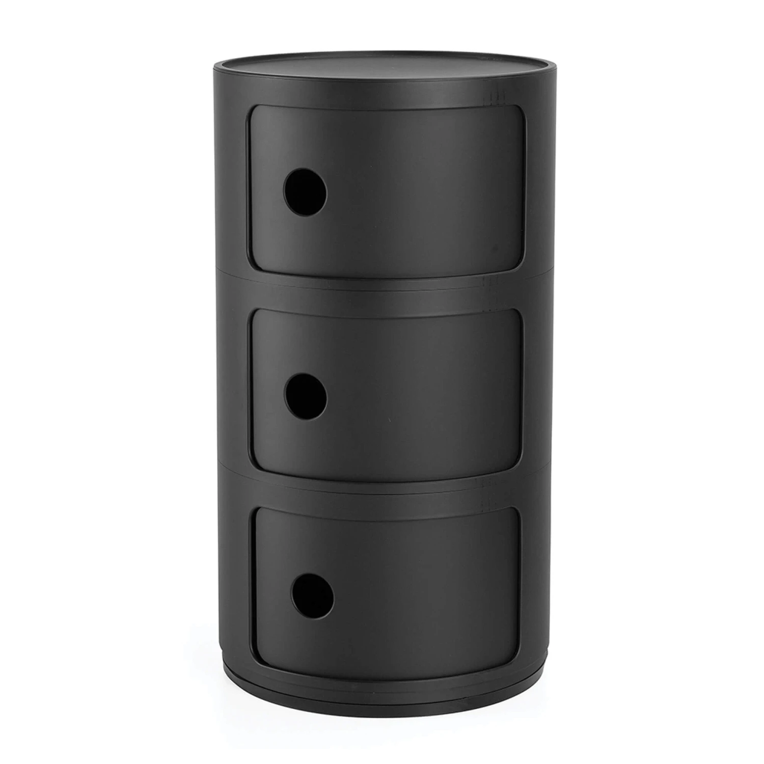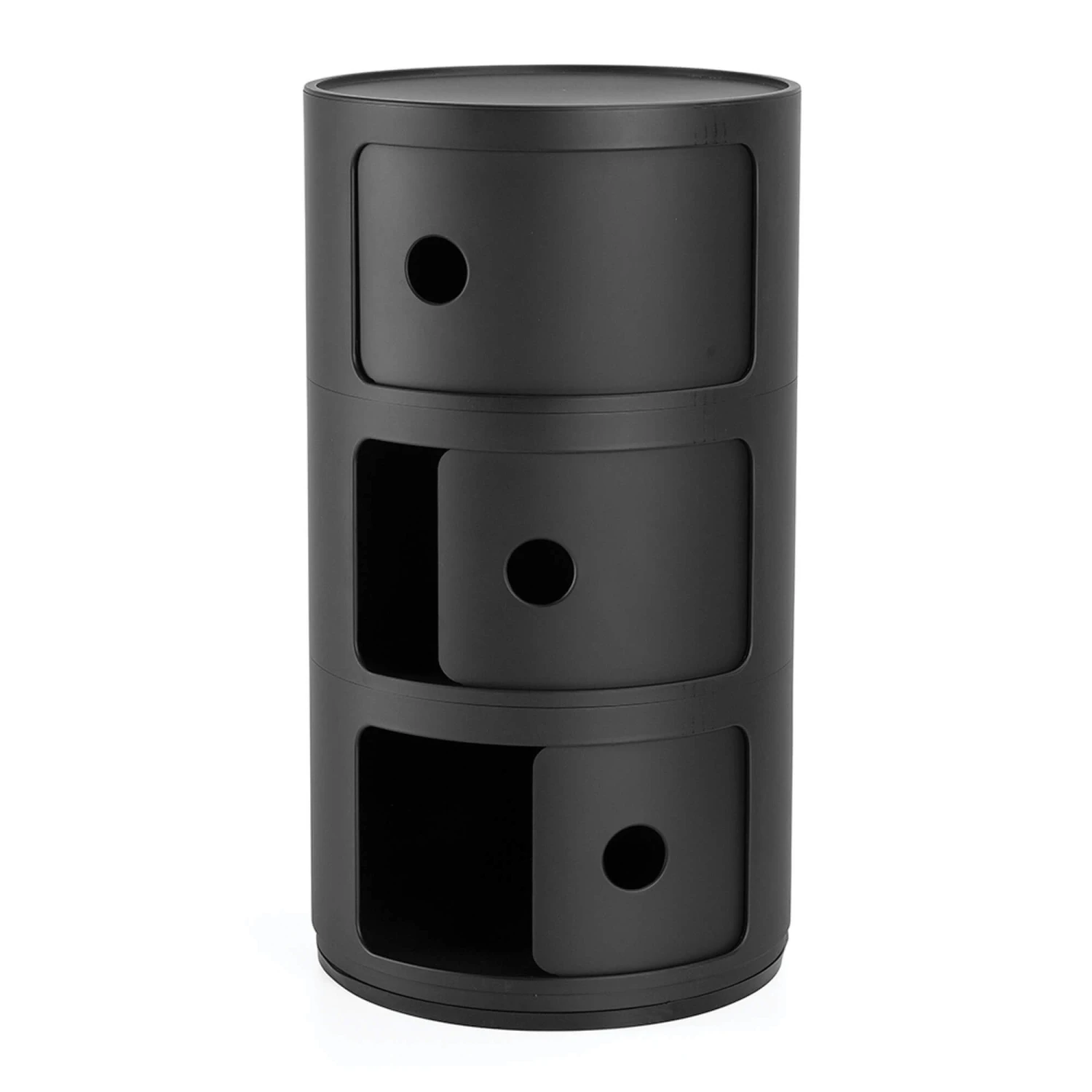 A timeless furnishing classic designed with flexi-living and functionality in mind, the Kartell Componibili Black Recycled 3 Drawer Unit offers versatility with its adaptable design, which is comprised of 3 modules that can be stacked or used separately, so you can make the most of the space you have available. Each module features a sliding drawer front, so the internal storage section can be easily accessed. The simplistic round shape is ultra-modern in appearance and finished in a soft touch, black matte finish that will translate well with many décors and colour schemes.
