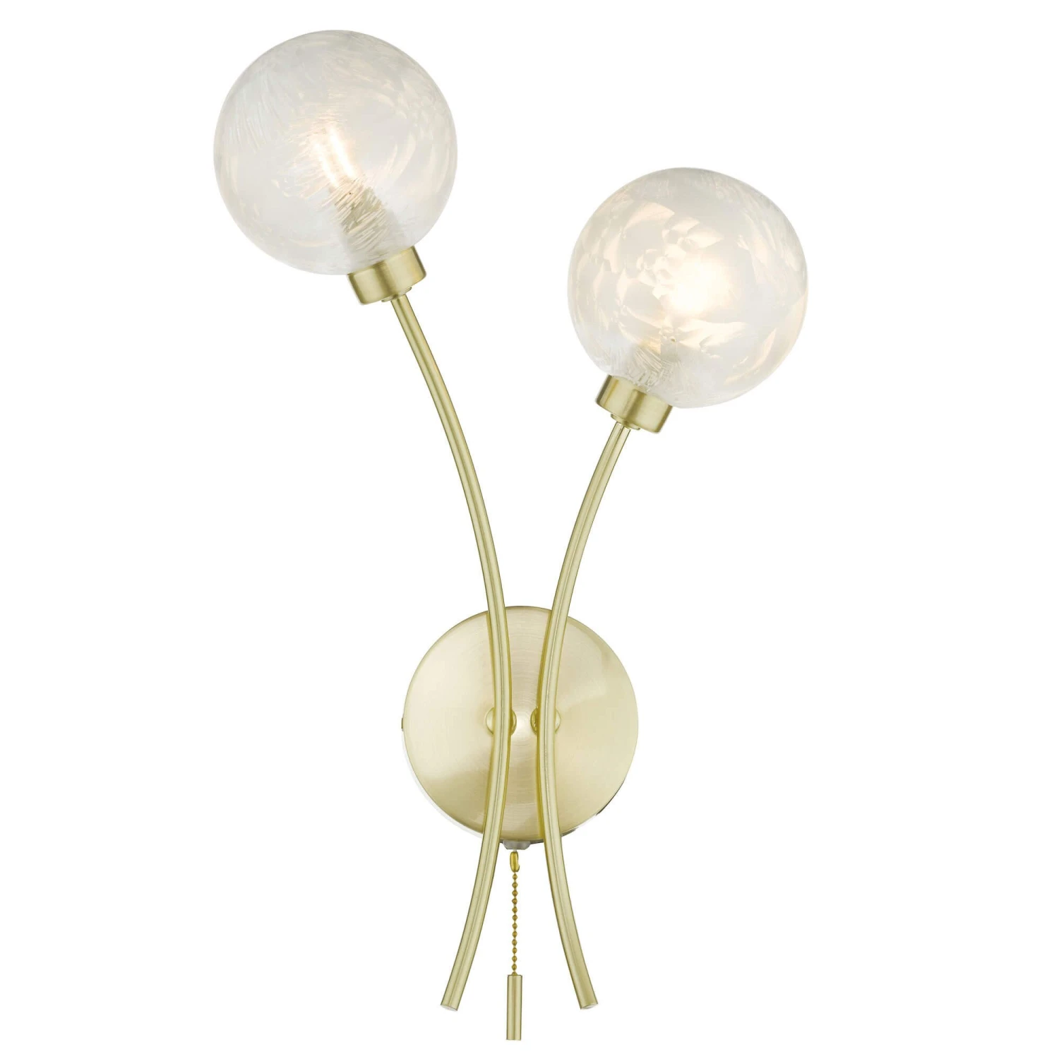 The Avari Wall Light features two frosted glass shades which gives an illusion of a sphere made of ice crystals. Finished with satin brass, the lamp is 44cm tall, making this an eye-catching feature in any living space.