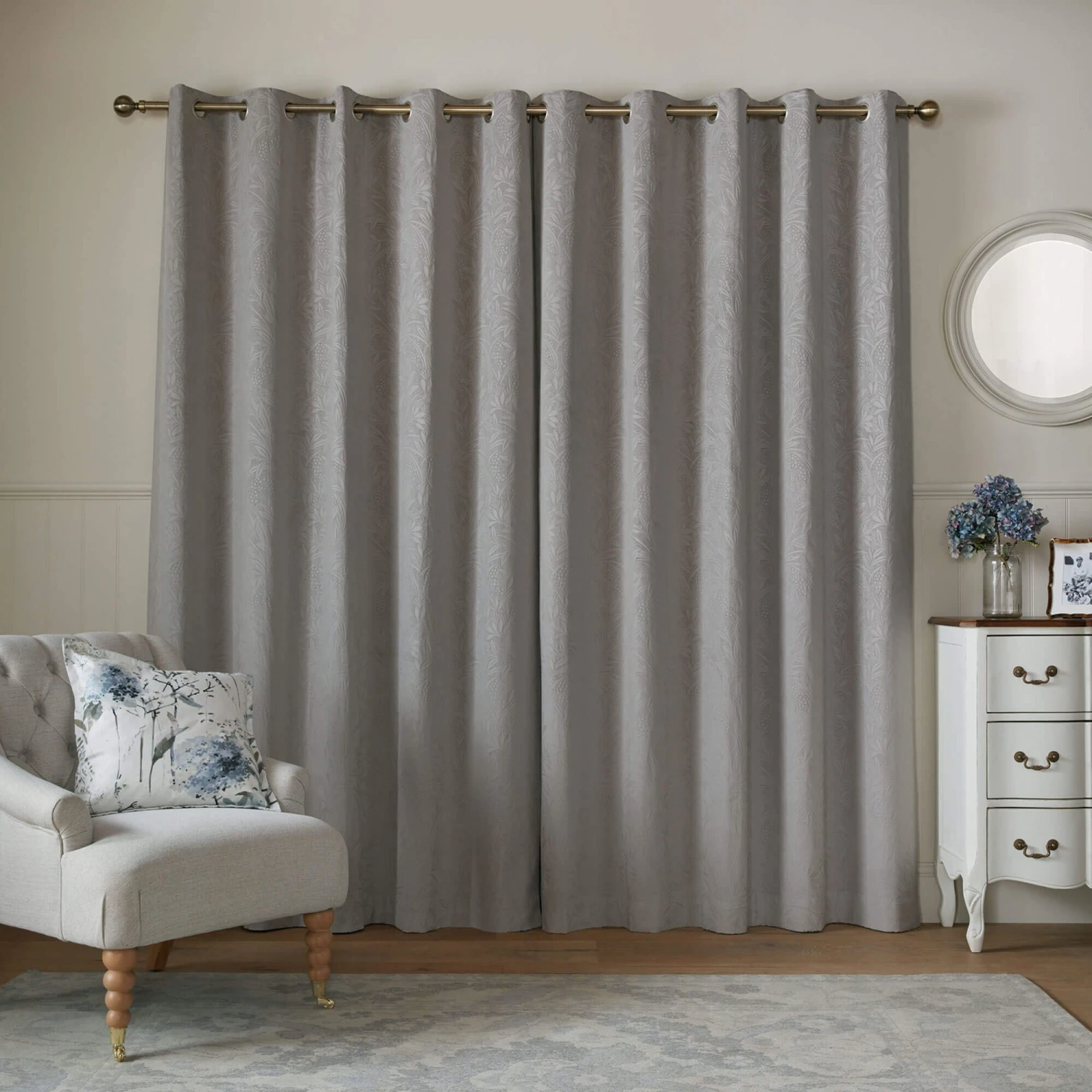 Laura Ashley Barley Embossed Steel Grey 66″ X 54″ Eyelet Curtains