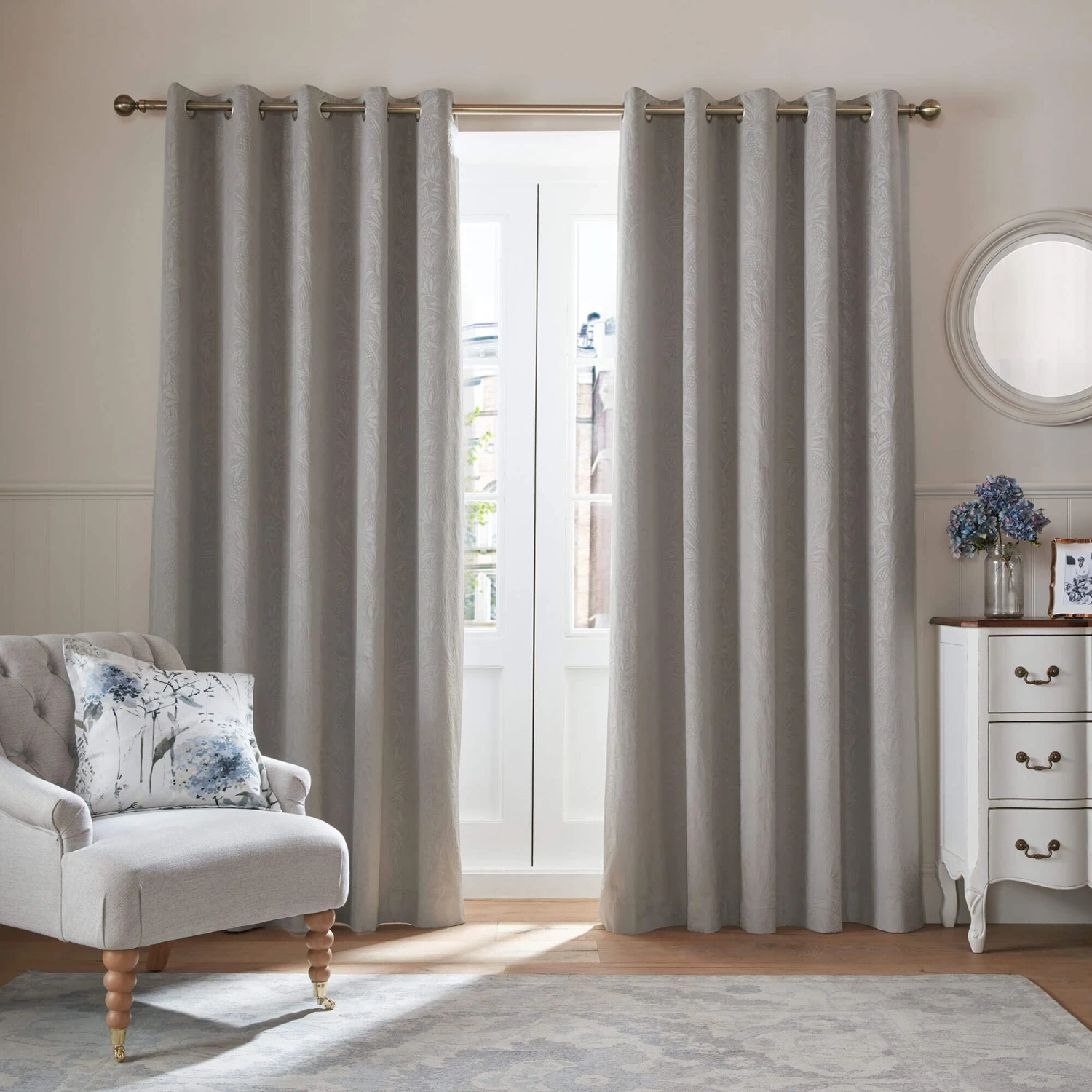 Laura Ashley Barley Embossed Steel Grey Eyelet Curtain Collection