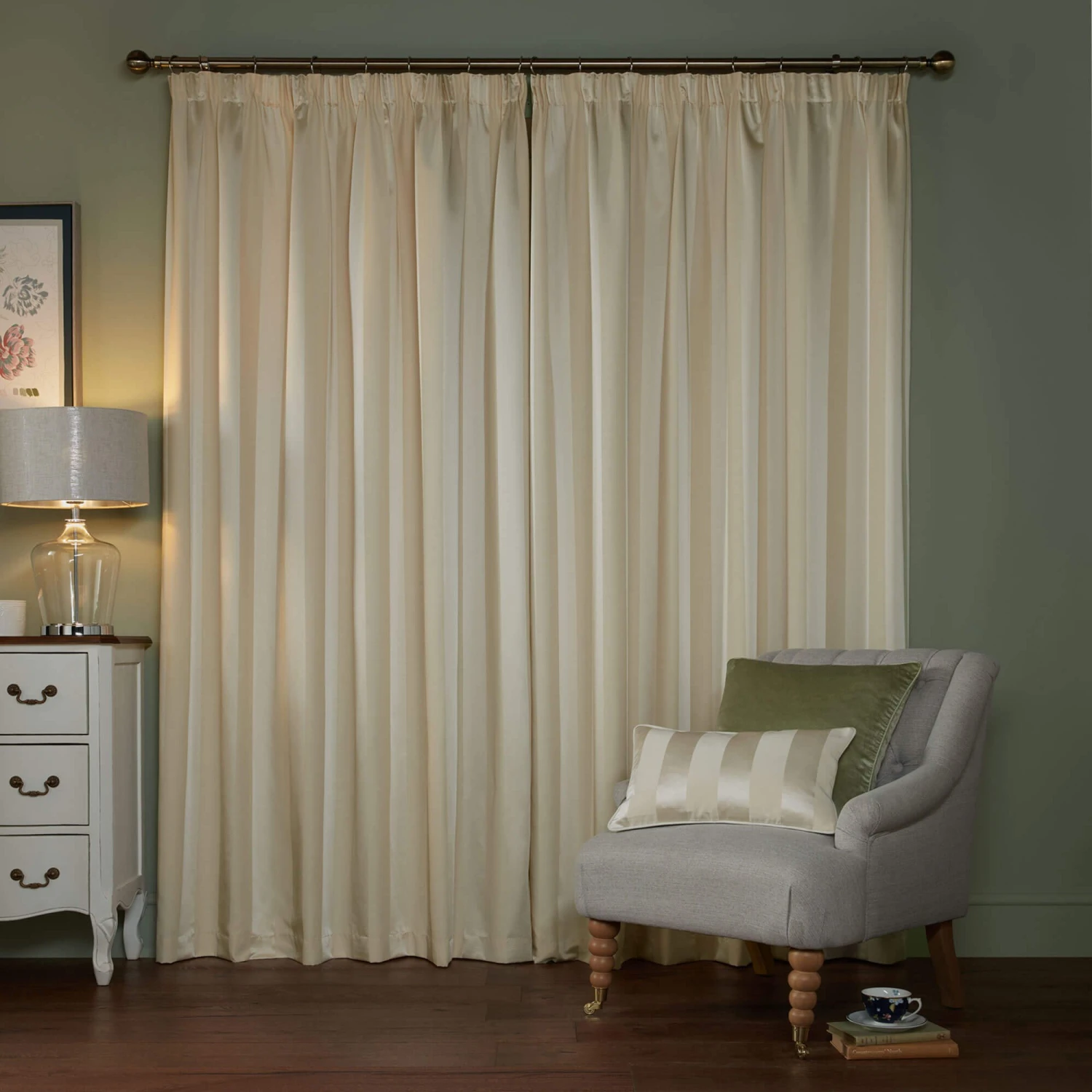 Laura Ashley Lille Stripe Oyster 88″ X 90″ Pencil Pleat Curtains
