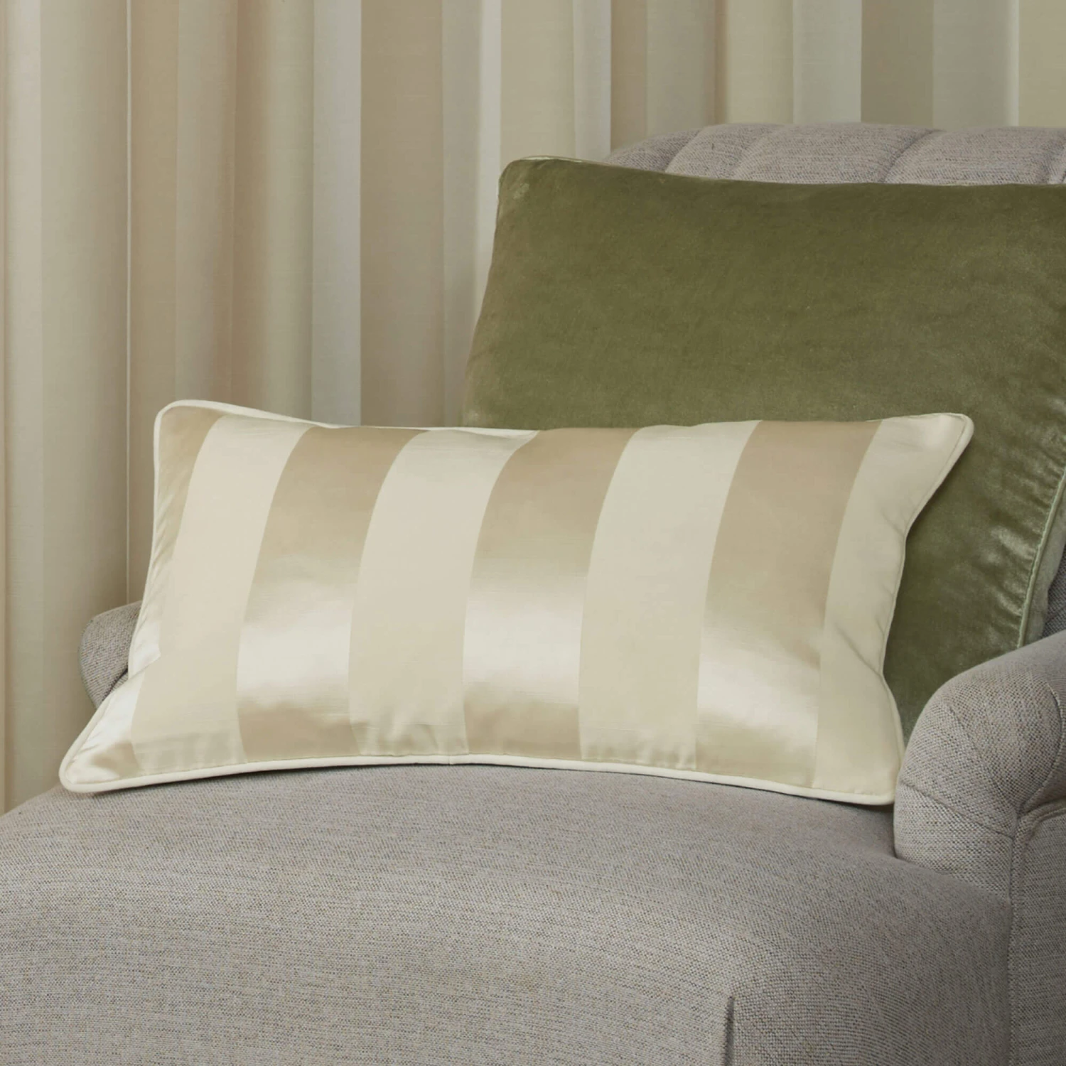 Laura Ashley Lille Stripe Oyster Pencil Pleat Curtain Collection