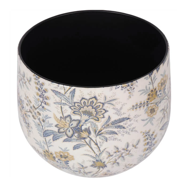 Each piece is crafted from durable iron and finished with a unique glass coated finish, with a result of a meticulous enamelling process that provides a resilient and glossy surface. The overall aesthetic presents a subtle yet striking looking, making this pot a perfect addition to a windowsill, mantelpiece or shelving unit. Their timeless appeal is enhanced by the beautiful muted, pale colours that provide a soft, calming presence. Adorned with a floral and nature pattern, the motifs weave a table of botanical elegance across the surface of each pot.
