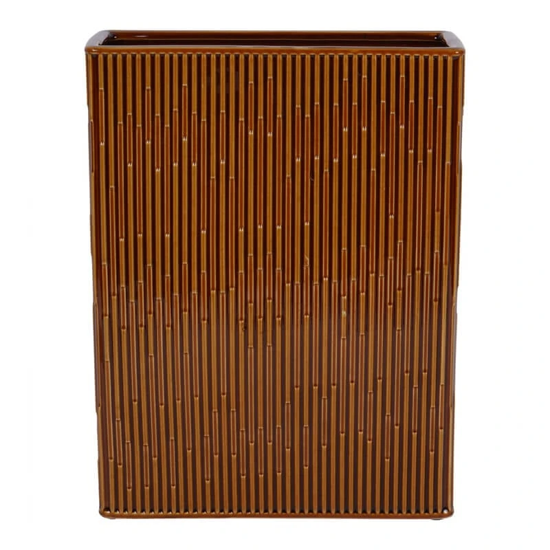 A large rectangular reeded vase finished in a warm brass tone. The vase features a distinct character and pairs beautifully with natural and neutral interiors.