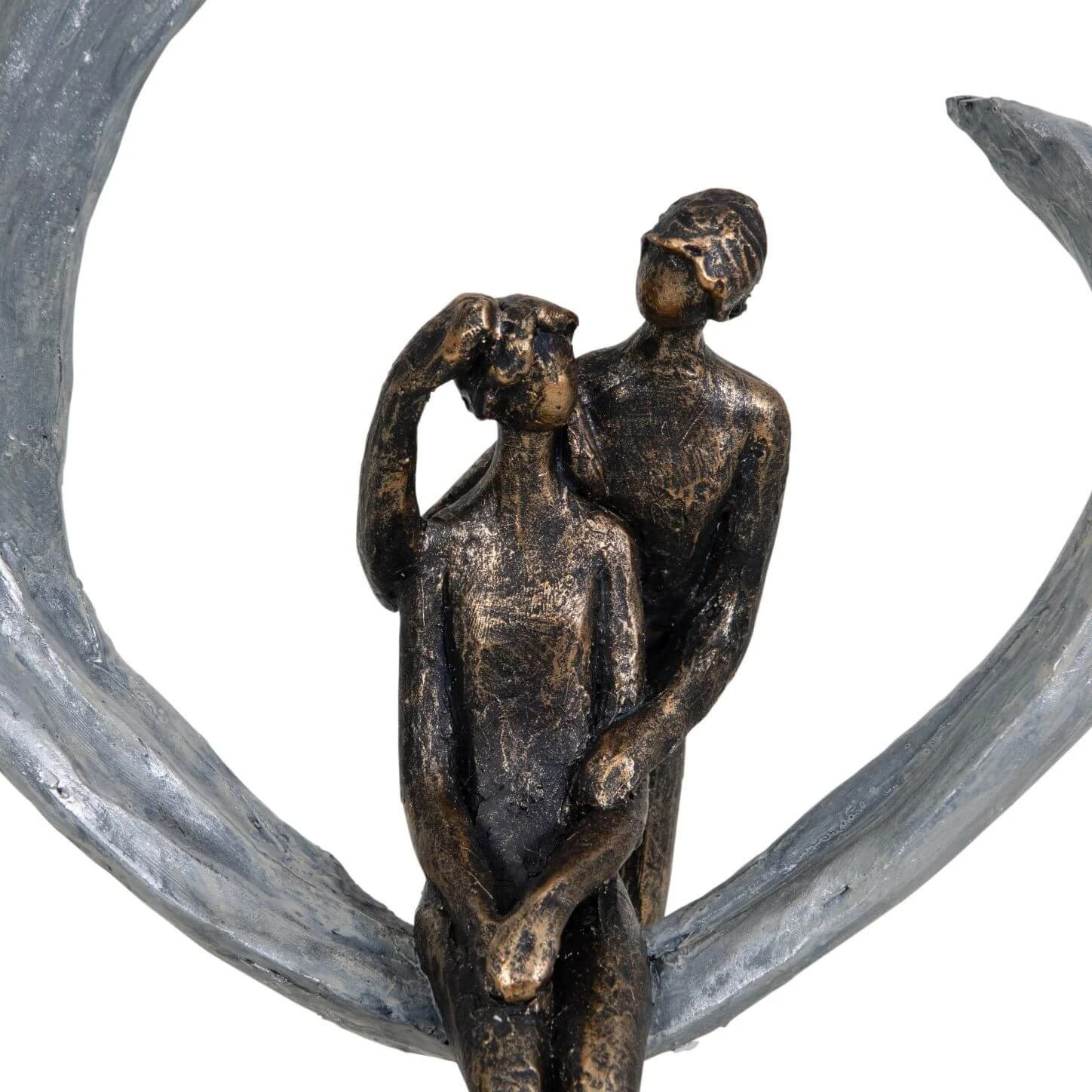 This beautiful sculpture from Libra depicts a loving couple, with a lady gazing up at her partner as he gently embraces her. The couple are set within an abstract form, in the shape of a swirling circular heart, with mixed metal colouring enhancing the unique and artistic characteristics of the sculpture.