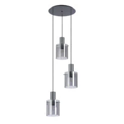 Icelle Matt Black & Burgundy Fade Glass Rods 3 Light Pendant