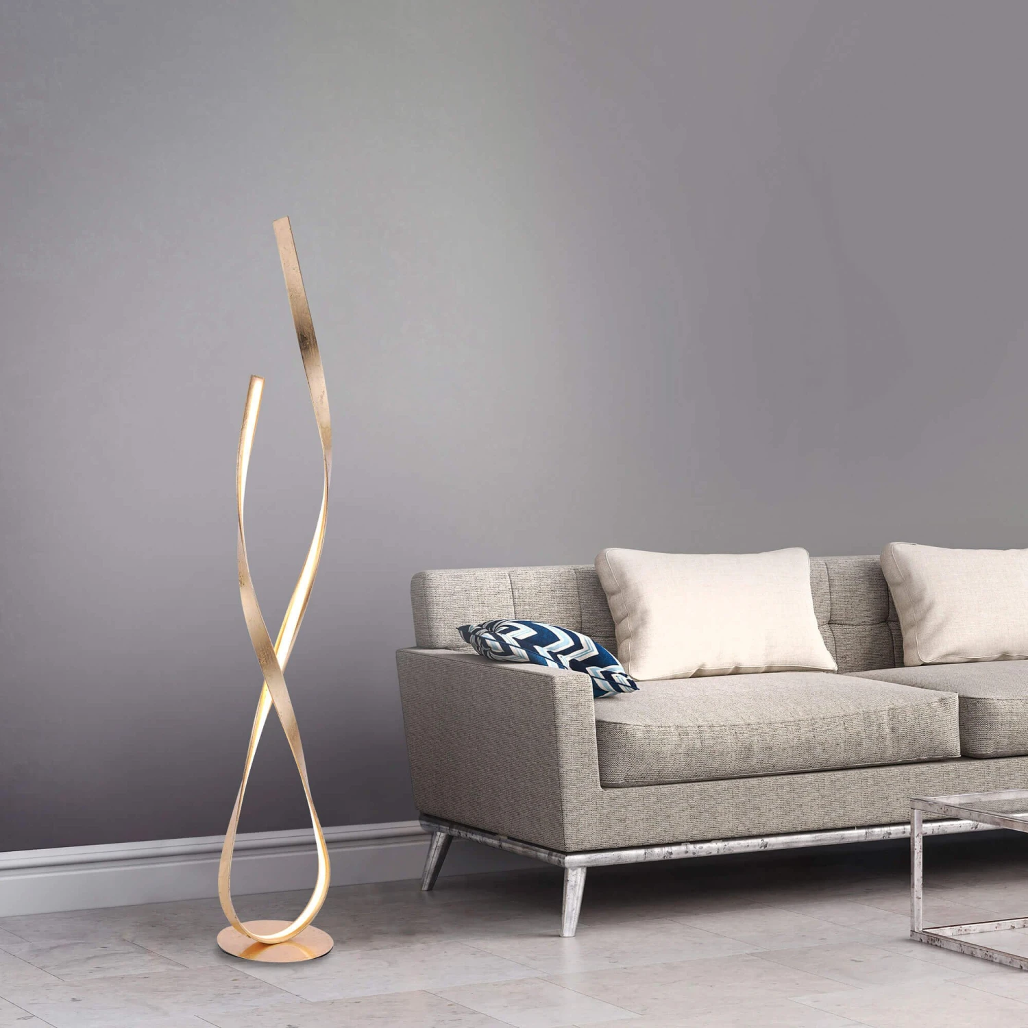 The Linda Gold Twist LED Floor Lamp fascinates, with its modern and elegant design. Operated by a cord dimmer, the curved shape of the lamp skilfully rounds off the overall picture of the floor lamp. With built in LED lighting, emitting a warm, white light colour, the Linda Gold Twist LED Floor Lamp ensures a cozy atmosphere in your home.
