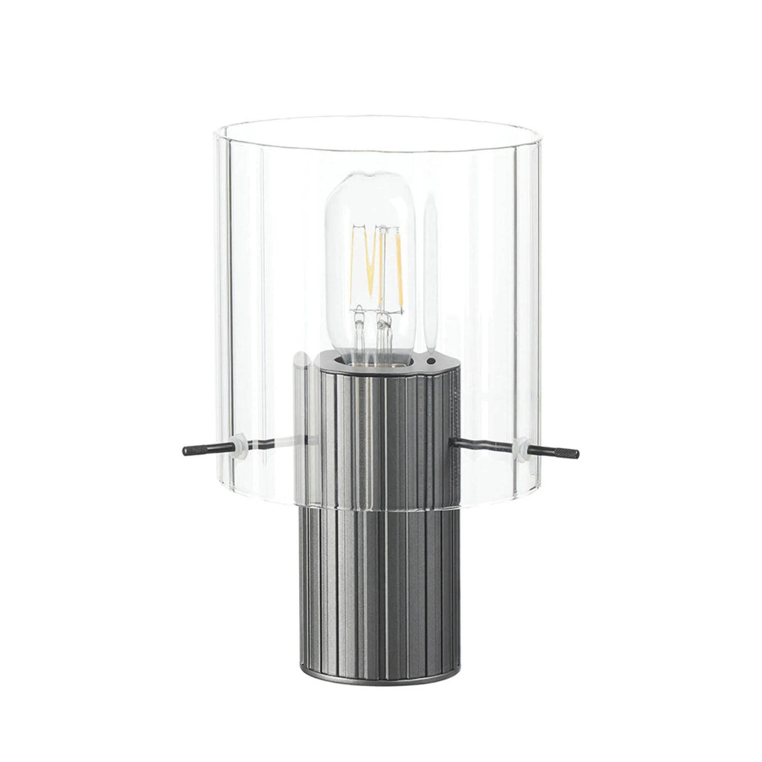 Lino Ribbed Dark Grey & Clear Wide Line Table Lamp