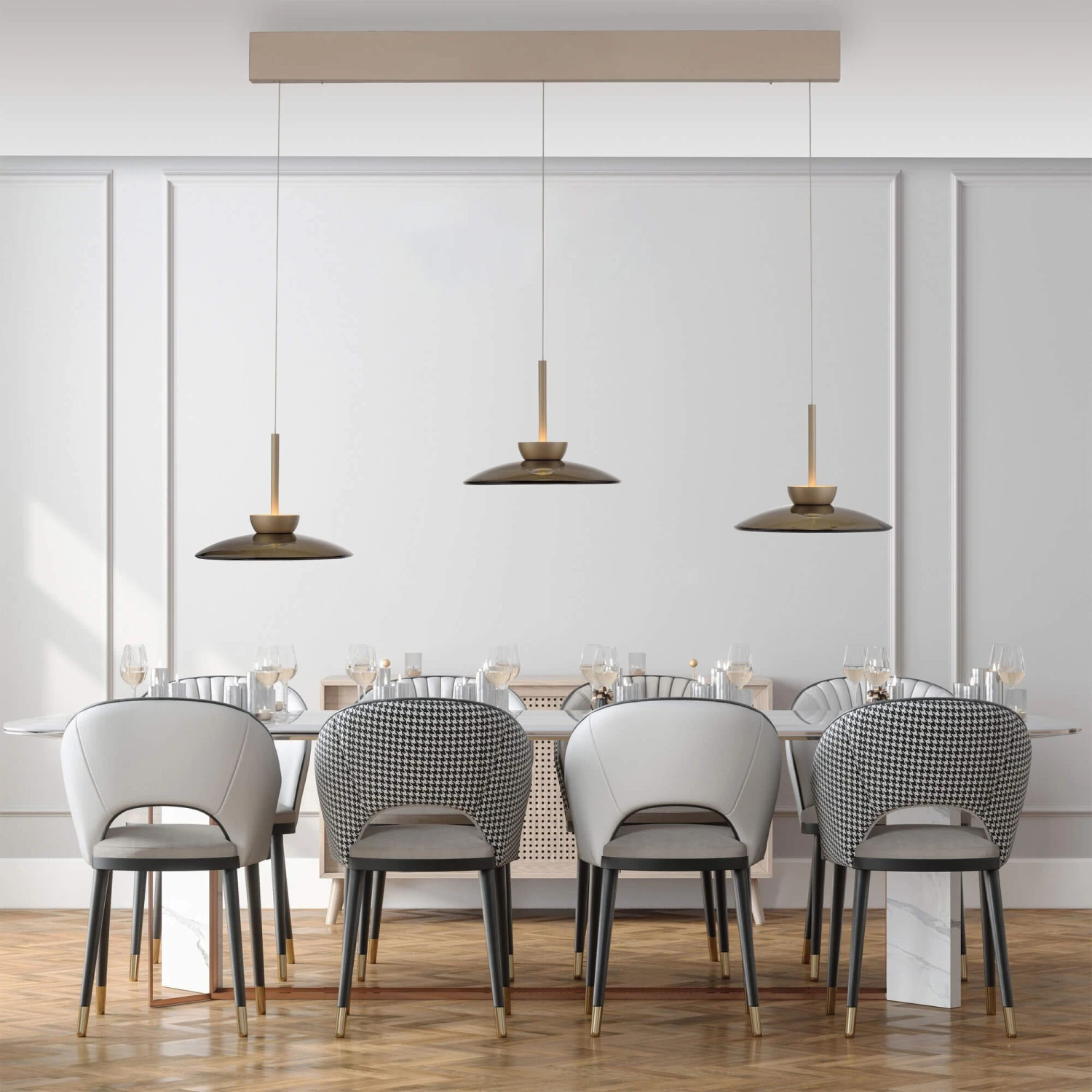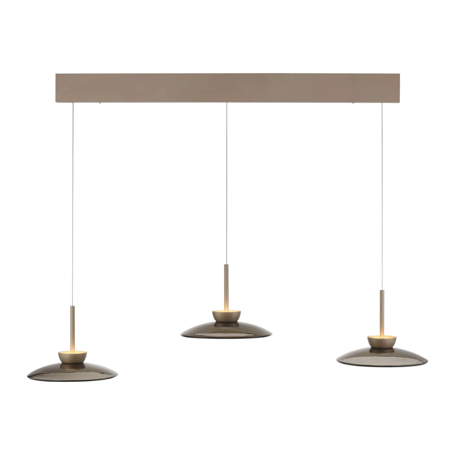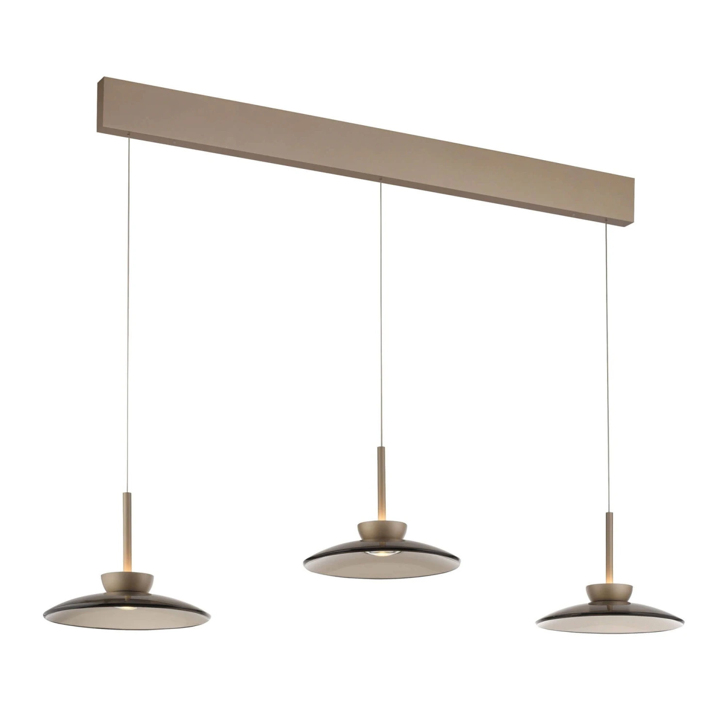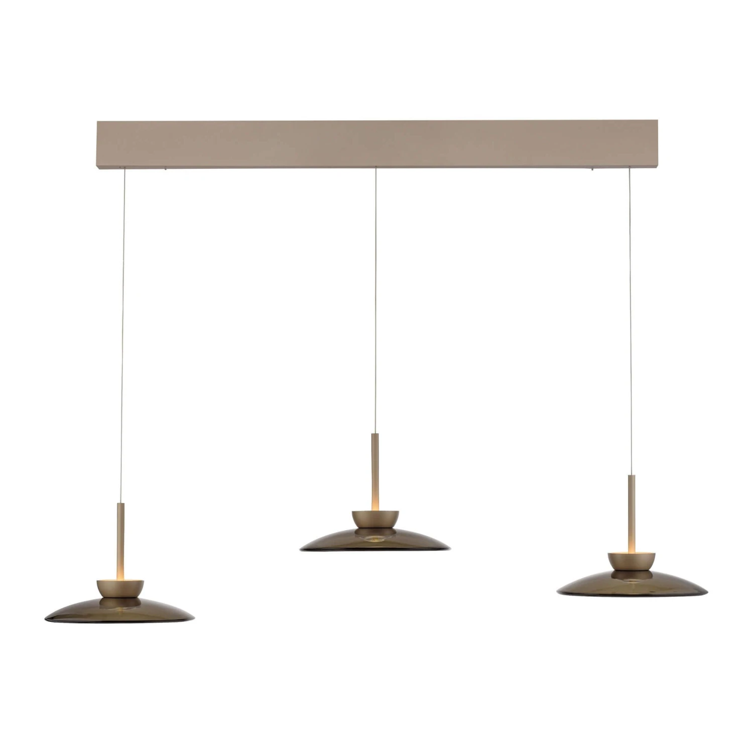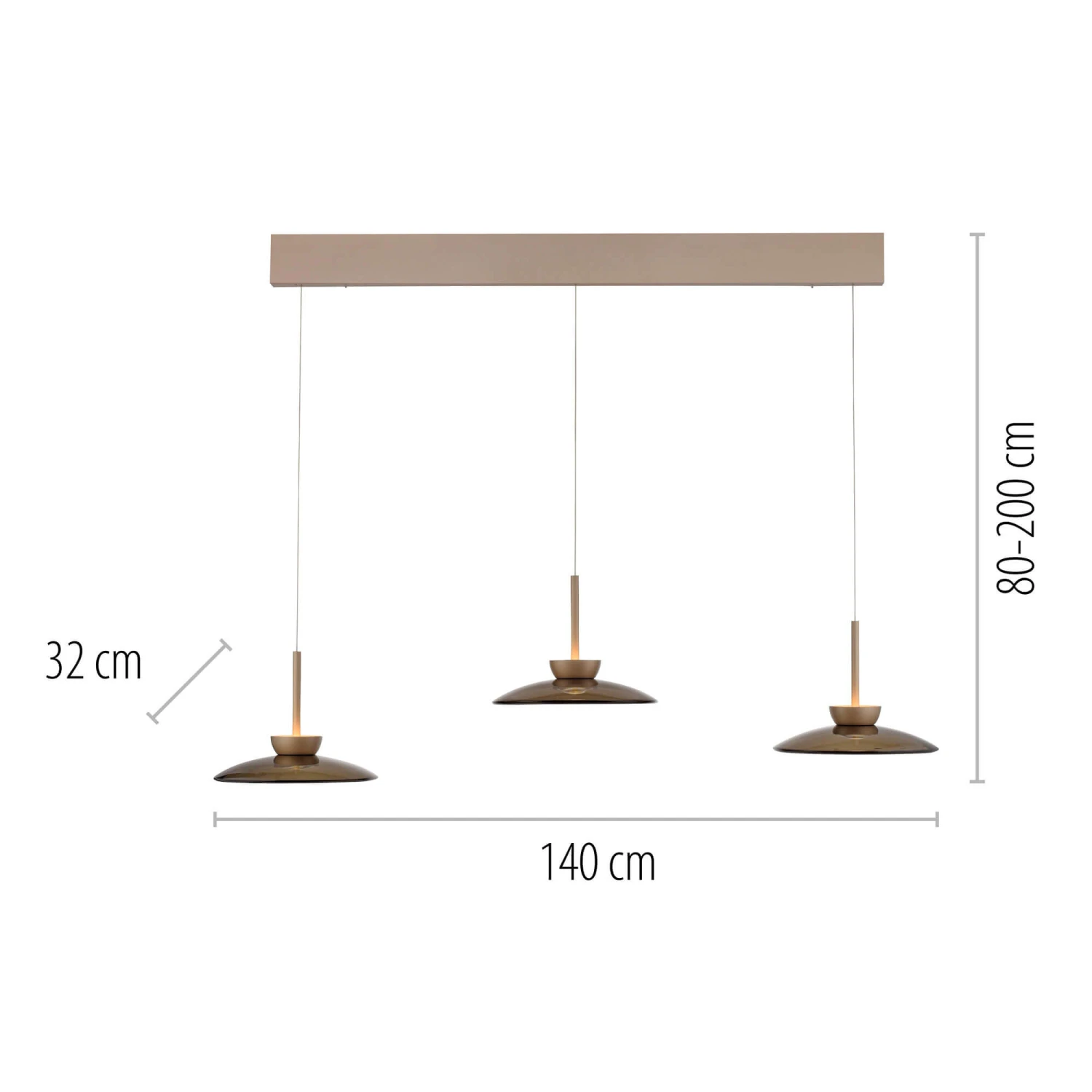 The Luna Bronze & Dark Amber Glass 3 Light Bar Pendant introduces timeless elegance with modern technology. Illuminated by three LED light sources emitting a warm white light, this sophisticated bar pendant features a rectangular bronze metal base combined with three round dark amber glass shades, providing a cosy and inviting ambience. Dimmable via a separate Tronic dimmer, the brightness can be adjusted precisely according to your desired mood while the Comfort-Lift function enables the height of each light to be easily adjusted or positioned individually thanks to the built-in mechanism in the canopy, offering full flexibility for every situation. Adjustable in height from 80cm to 200cm, this stylish bar pendant is the perfect mix of design and quality, making it ideal placed in any contemporary home, whether it be in your living room or above the dining table.