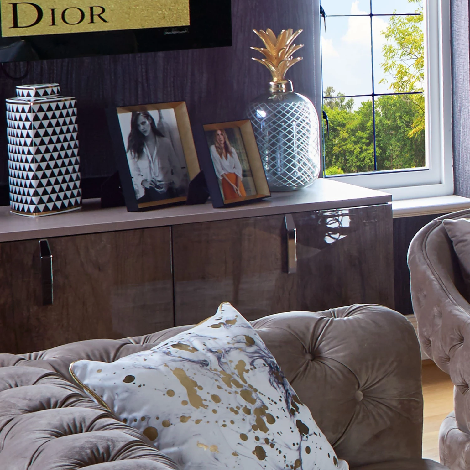 The Medina range is a striking Italian designed collection, with innovative materials and outstanding attention to detail to grace and perfectly compliment any contemporary living space. Finished in a lacquered high gloss with a wood grain effect, each piece reflects light and adds depth and warmth to its surroundings whilst the clean lines and metal details featured within the range compliment each piece beautifully. With its slender and elegant design, the Medina range brings an effortless chic to your home and will transform your living or dining space into a stylish and sophisticated area for whole family to enjoy.