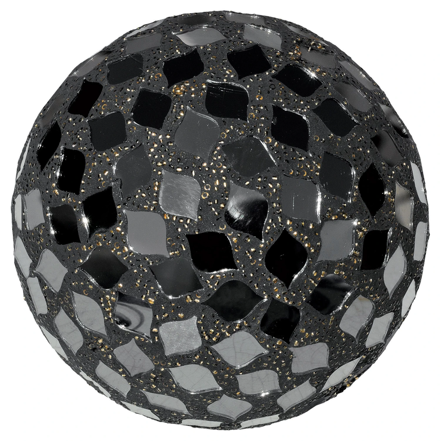 This medium decorative ball would look great in any space. Black coloured palate with a mirrored, mosaic design, this decorative sphere is ideal as a stand alone piece or built up for a larger display