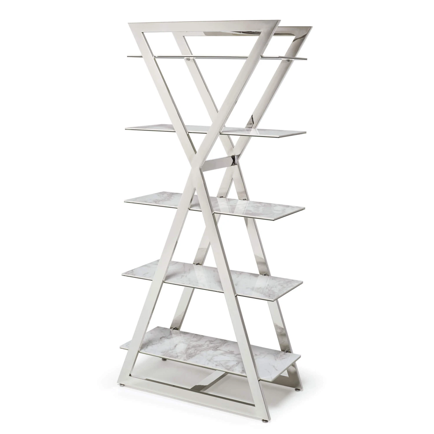 The mercury wall unit offers a unique twist on traditional shelving, crafted with an x shaped polished stainless frame encasing clear toughened glass to display your favourite accessories in you living space. This statement piece offers elegance with practicallity.