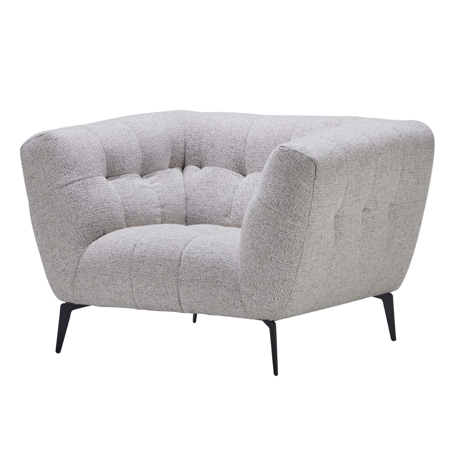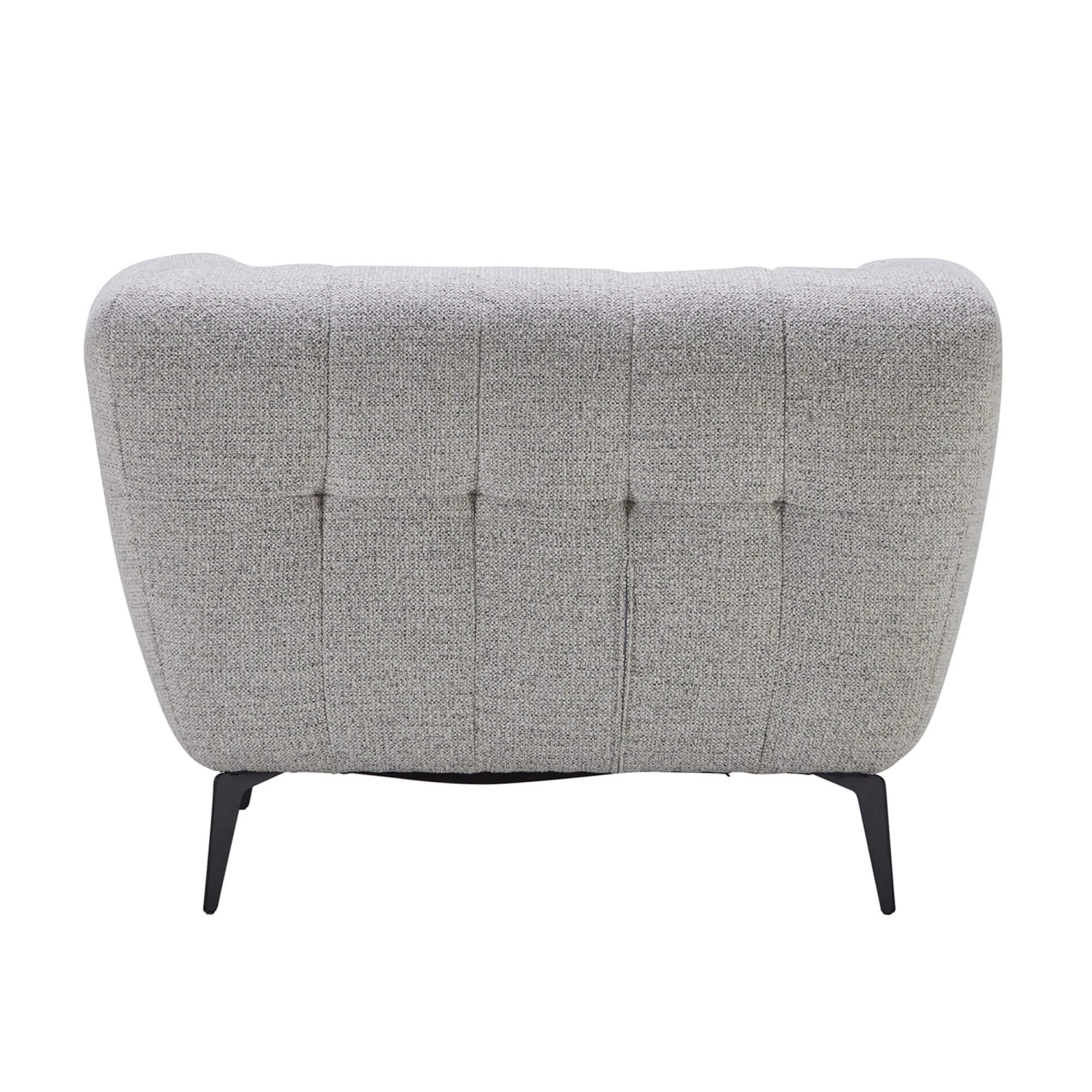 Upholstered in a luxurious light grey fabric, the Montreal has a pin-tuck tufting and deep value detailing, adding depth and creating an attractive grid-like pattern. With slender matt black metal legs, it boasts a modern boutique aesthetic, which is sure to elevate any interior with its air of style and sophistication.