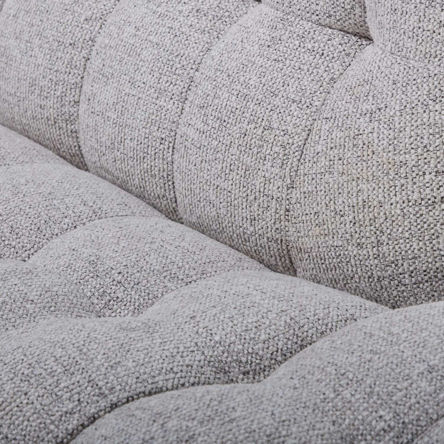 Upholstered in a luxurious light grey fabric, the Montreal has a pin-tuck tufting and deep value detailing, adding depth and creating an attractive grid-like pattern. With slender matt black metal legs, it boasts a modern boutique aesthetic, which is sure to elevate any interior with its air of style and sophistication.