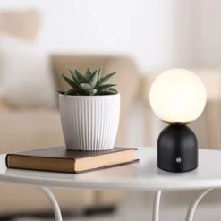 Immerse your room in a cosy ambience with this Mystic Black Opal Table Lamp. Illuminated by an integrated LED bulb, this minimalist table lamp features a opal plastic shade with a matt black metal base, creating a soft and pleasant glare-free glow when illuminated with a beam angle of 120°. Operated by a practical integrated touch on/off function, it has a infinitely variable touch dimmer allowing to adjust the brightness and colour of the lamp between three temperatures to your desired setting, and is supplied with a handy USB charging cable for the charging of the built-in battery capacity of 1200mAh, able to be charged in 4 hours and giving you full flexibility of where to place the lamp without the inconvenience of relying on a power outlet. Available in three colours; black, brass and white, this stylish and functional table lamp is perfect for adding a touch of modern elegance to any room.