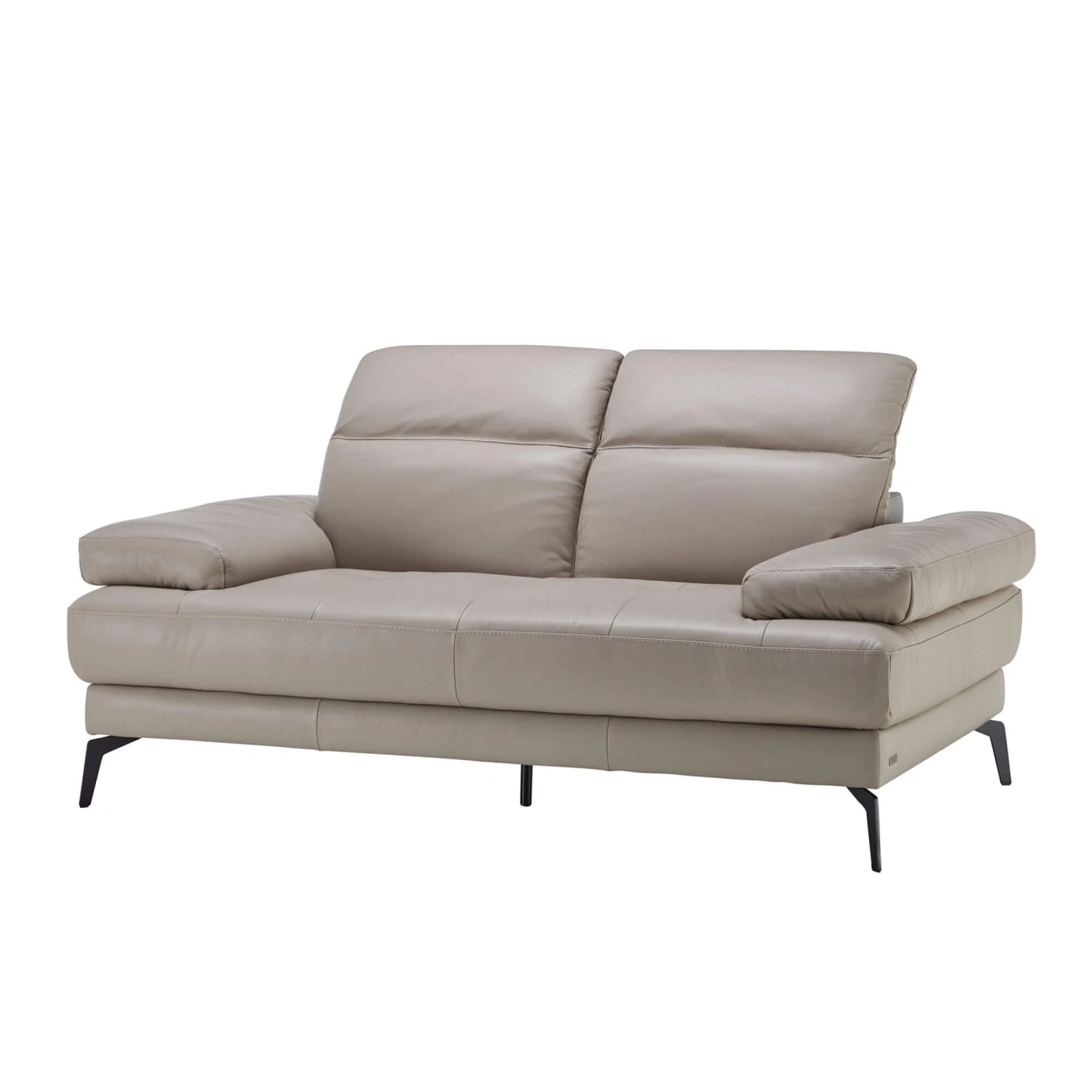 The Dado Stone Grey Leather 2 Seater Sofa by Natuzzi Editions is designed with elegance and comfort in mind. Upholstered in a smooth and high-quality stone grey leather fabric, the Dado sofa has a sleek silhouette with manually adjustable headrests, cushiony padded armrests and slim black metal legs, providing a firm yet wonderfully comfortable seating experience. With a clean outline and a supportive frame, the Dado sofa is undoubtably a timeless piece due to its sophisticated appearance and practical features, making it the perfect addition to any neutral or contemporary home dรฉcor.