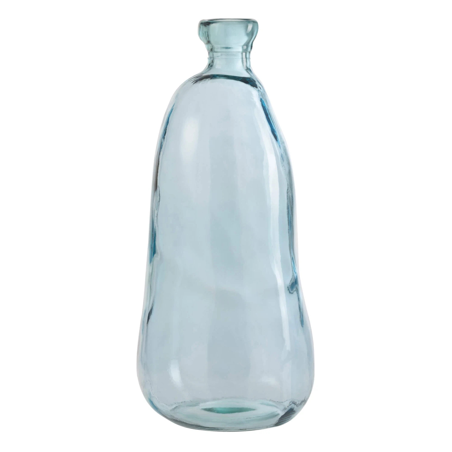 The Olivia Light Blue Glass Vase has a narrow opening top with an irregular shape for extra detail making a beautiful accessory in your home.