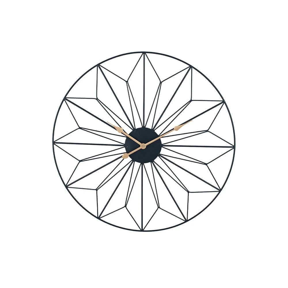 Make a statement on your wall with this geometric designed, large metal wall clock finished in black and gold metal. This beautifully crafted design is not only a beautiful timepiece, but a work of art and focal point for any interior.