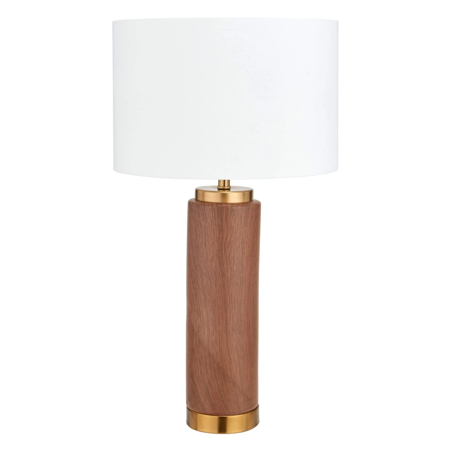 PACIFIC Carrara Tall Wood Effect Ceramic Table Lamp With White Shade