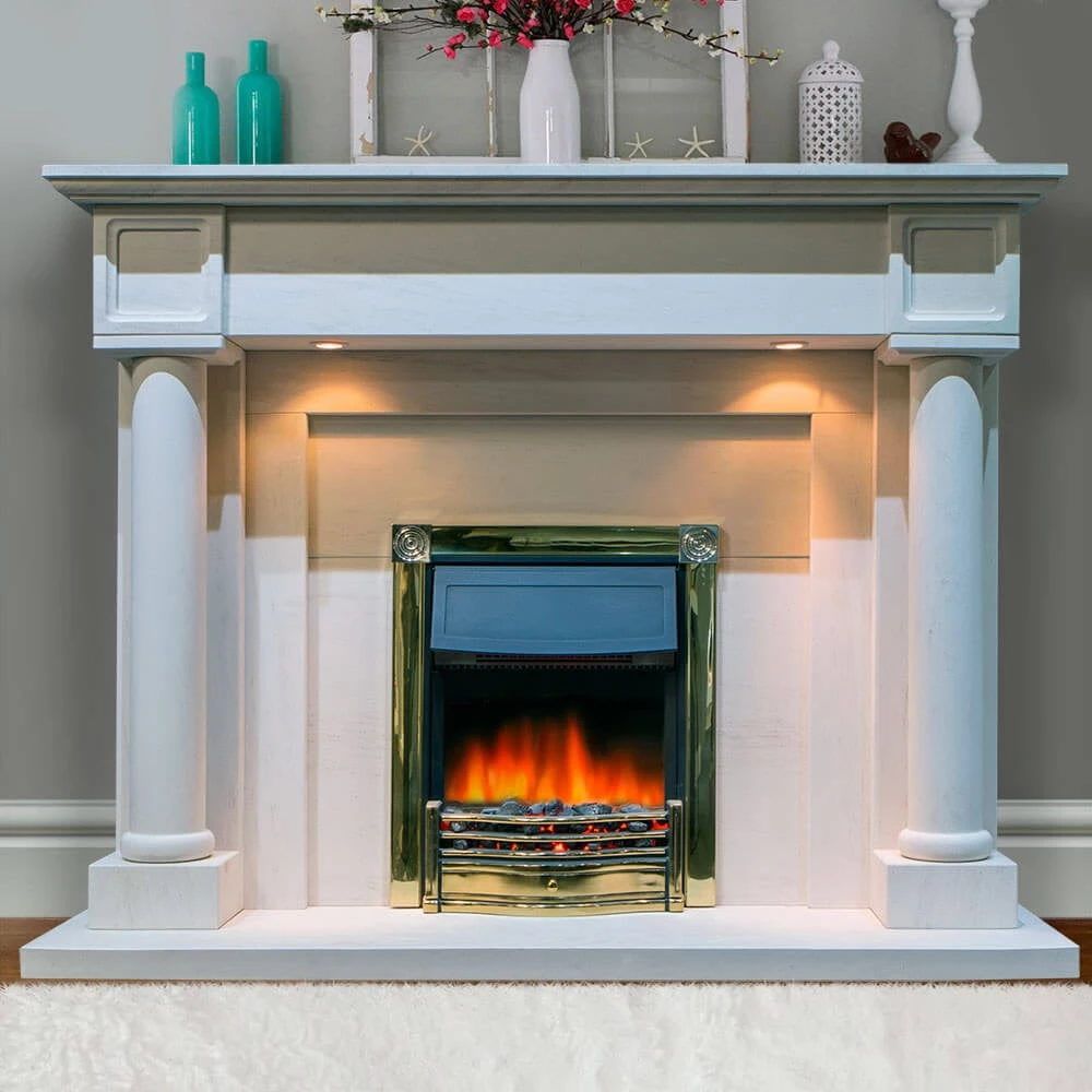 Crafted to the highest standards from Portuguese Limestone, the beautiful Rivera limestone surround features an exquisite design, with grand columns, a boxed header and elegant carved detailing. The Rivera limestone fire surround will bring an opulent finishing touch to any living space and this impressive design is perfect for larger rooms.