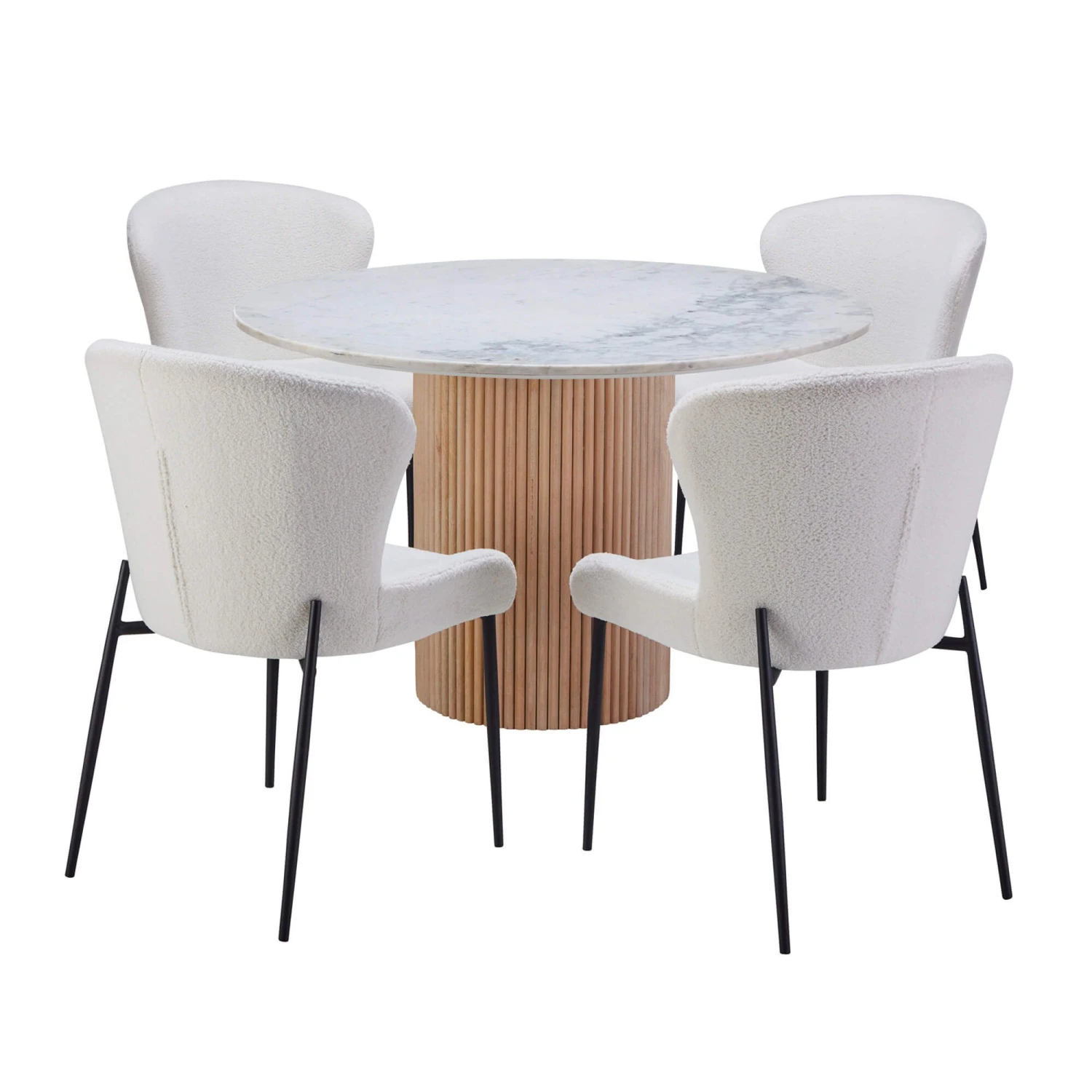 Celebrating the raw beauty of natural materials in a contemporary design that speaks for itself, the Rochelle 120cm Round Mango Wood & Marble Dining Table is a marvel to behold with its visually striking, modern design that is sure to take pride and place in any dining area.