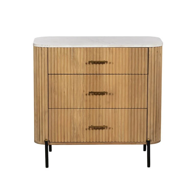 Celebrating the raw beauty of natural materials in a contemporary design that speaks for itself, the Rochelle Mango Wood & Marble 3 Drawer Chest is a marvel to behold with its visually striking, modern design that is sure to take pride and place in any bedroom.