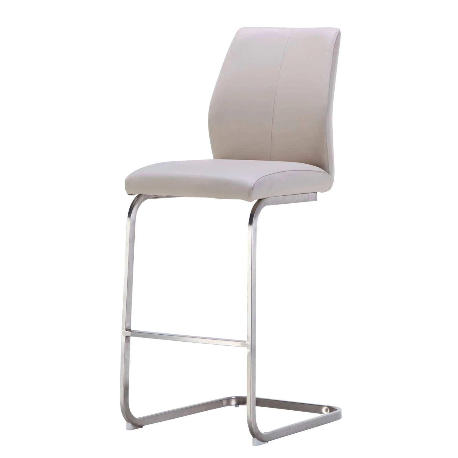 Upholstered in a taupe faux leather, the Roma bar stool has the modern style to suit an array of interior spaces. Use in the kitchen or with a bar table to create a chic and modern dining alternative.