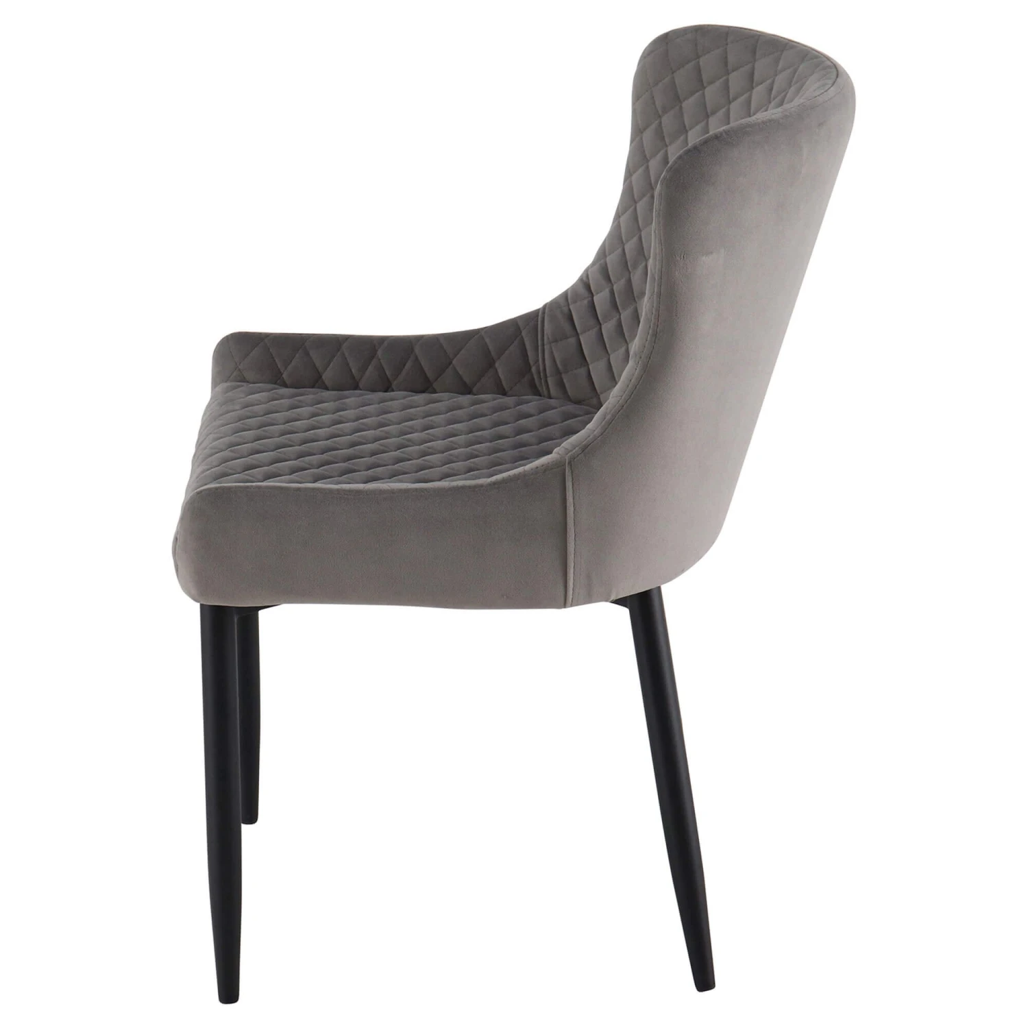 A must-have for the host with the most, the Toby Light Grey Velvet Dining Chair epitomises contemporary design and is perfect for entertaining. Each chair is meticulously crafted from a plush, brushed light grey velvet fabric with an exquisite diamond-shaped quilt-effect stitching, so when you touch the surface, you feel the instant luxury with a textured finish. Accompanied with its scoop back, versatile light grey tone and industrial style, matte black metal legs creating a sleek, monochromatic look, the Toby is perfect for revitalising any home interior with its stylish, urban infused aesthetic.