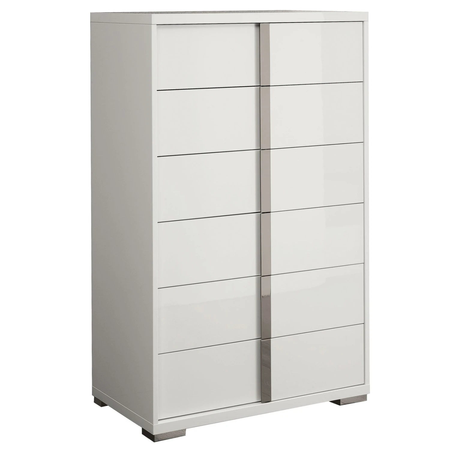 The Rosso 6 drawer chest of drawers stands out for its modern linear and bright design. The white finish with polished chrome handles and embellishment of which all enhanced by the high gloss finish.