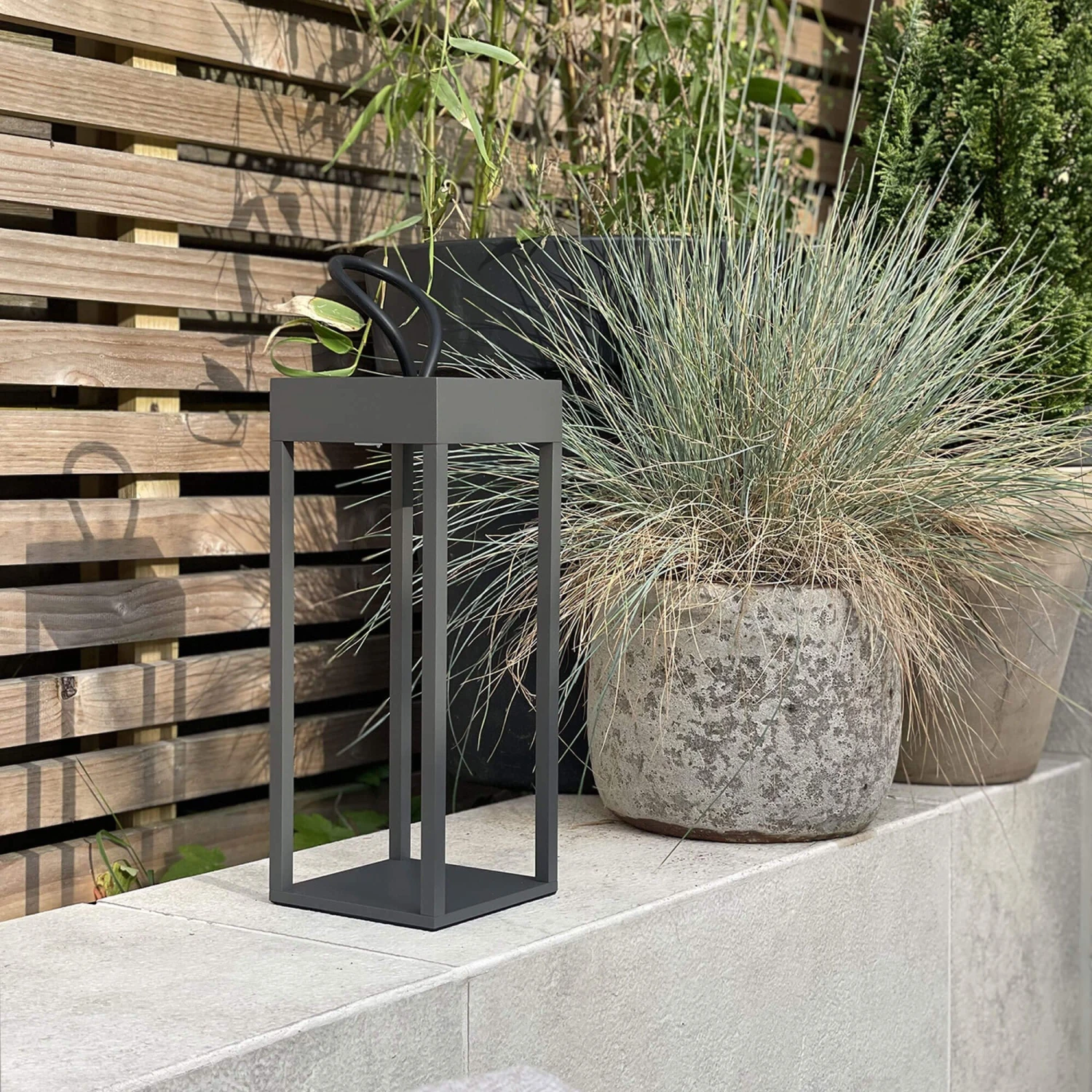 Add an impressive yet contemporary touch to your outdoors with this Sable Grey LED USB Charging Lantern. Illuminated by an integrated LED bulb emitting a warm white light, this sophisticated lamp features a flat lantern appearance in a modern grey finish, with a protection class of IP54, allowing it to be protected against dust and water splashes, making it suitable for indoor and outdoor use in occasional light rain. Battery operated and rechargeable via a supplied USB cable, it has a convenient dimmable function and a portable handle design, allowing you to move it anywhere with ease. Available in two colours; black and grey, this stylish lantern is perfect placed outdoors on your patio for a classic yet minimalistic look.