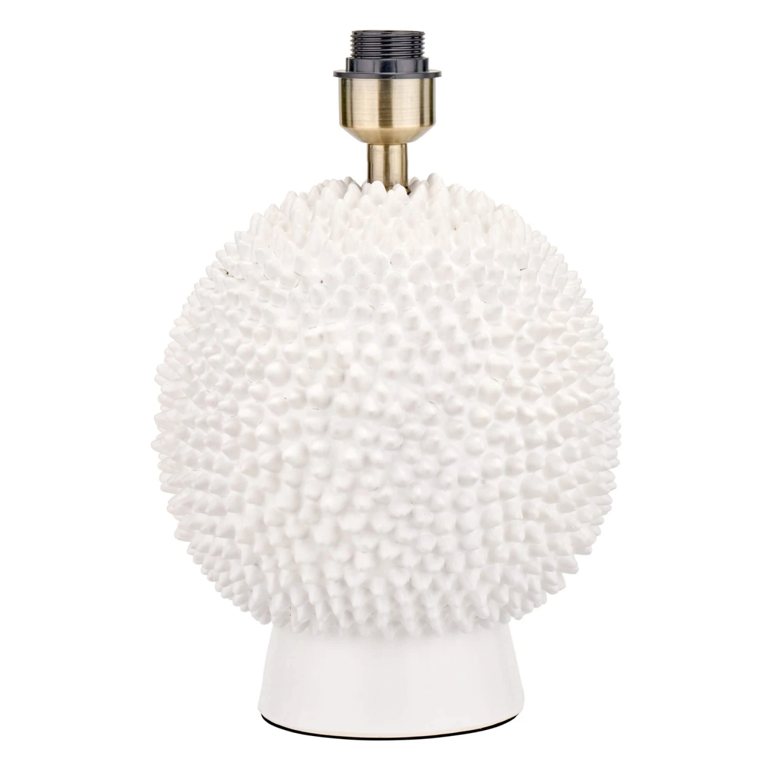 Introduce unique texture and costal charm to your living space with this Sea Urchin White Table Lamp Base. Made from ceramic, this chic lamp base features a round shape with a spikey design in a clean white hue, creating an eye-catching and tactile statement. The spikey textured sphere sits on a smooth, clean base elevating the lamp base to the centre stage. Available in two colours, this striking lamp base will effortlessly enhance and become the focal point of any space with its distinctive and appealing design, making it perfect for adding a modern yet dramatic touch to any décor.