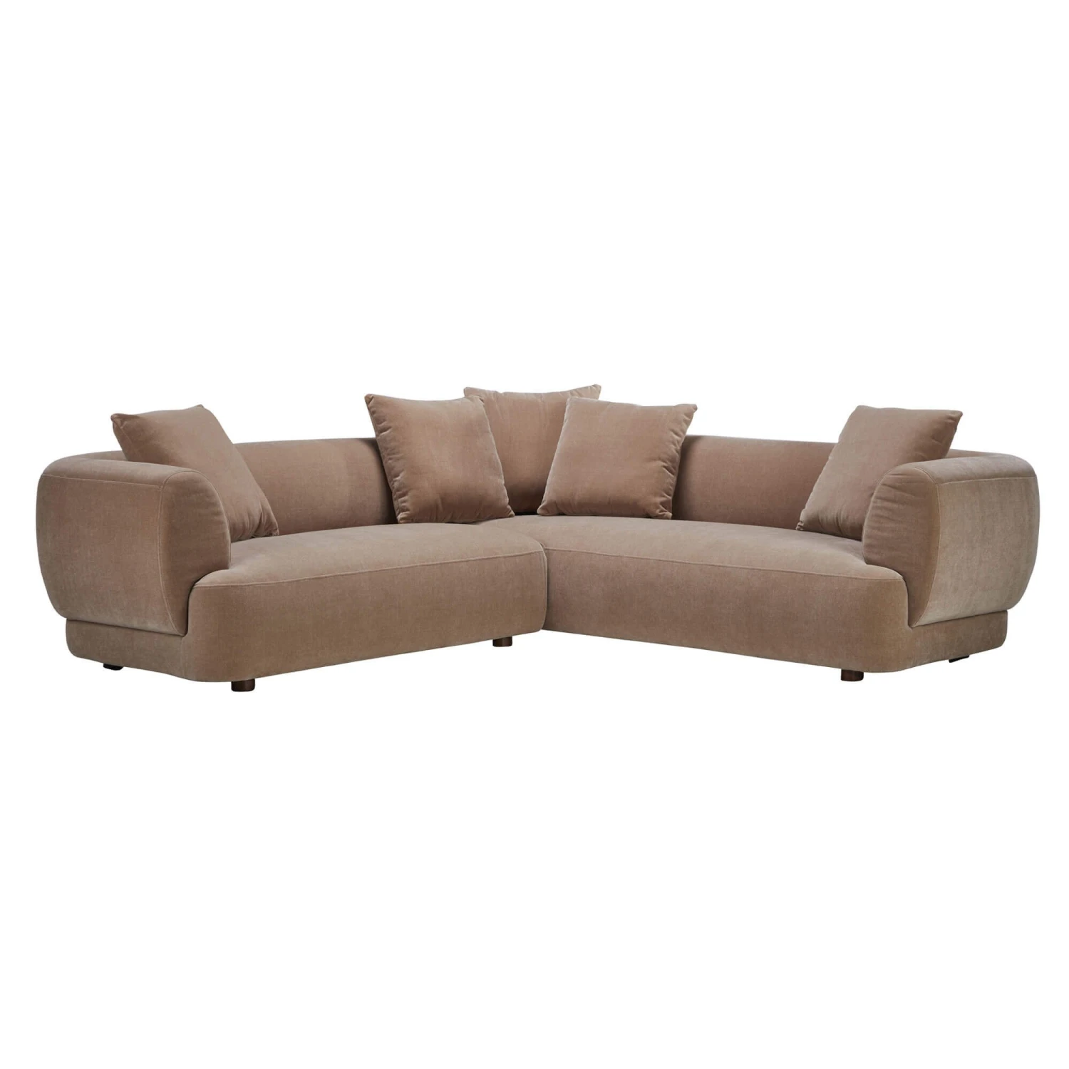 The Serenity Brown Fabric Corner Sofa blends elegant style with luxurious comfort. Upholstered in a brown fabric, the Serenity features a curved silhouette and dark brown wooden legs, creating a beautifully sumptuous and inviting piece. Sophisticated and timeless, the Serenity is a stunning finishing touch to any neutral or contemporary home interior thanks to its warm tone and stylish design, making it delightful to lounge on.
