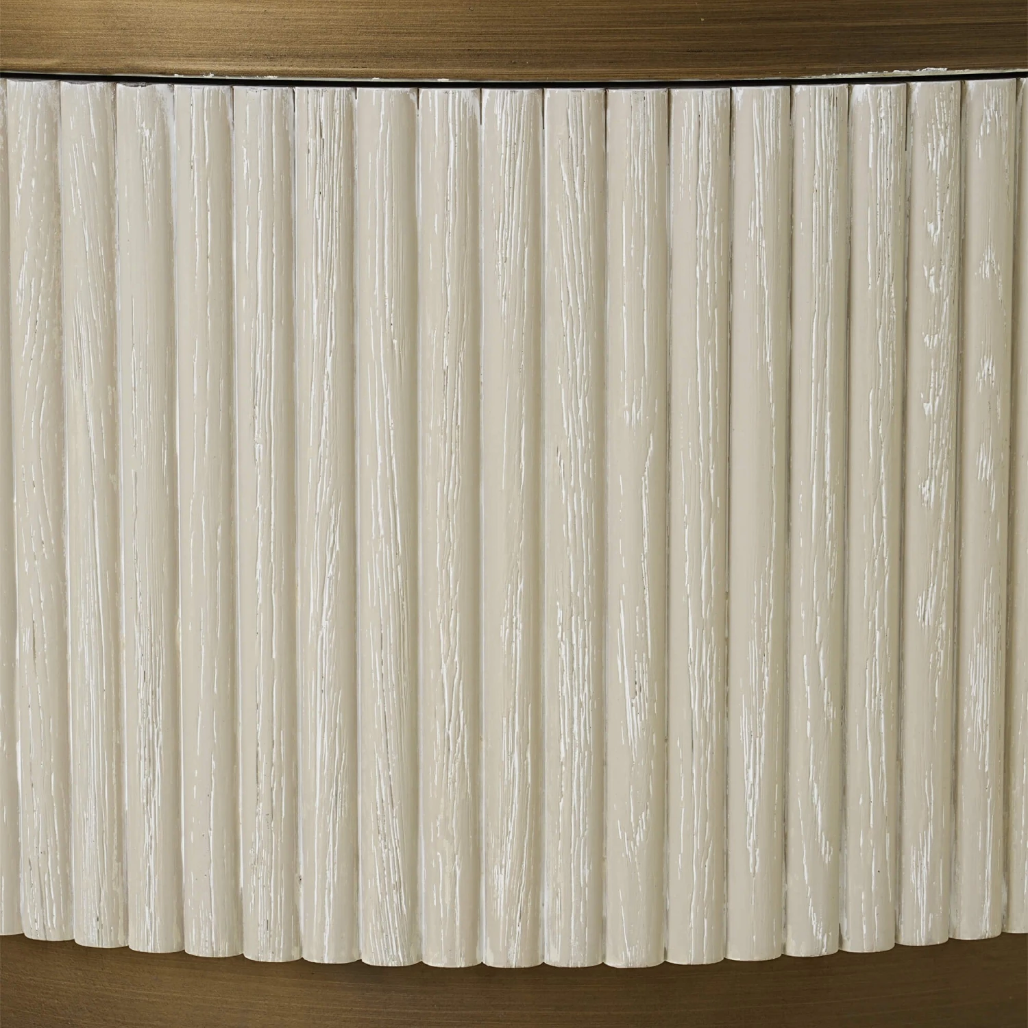 interplay of reeded detailing, with contrasting accents and soft natural tones