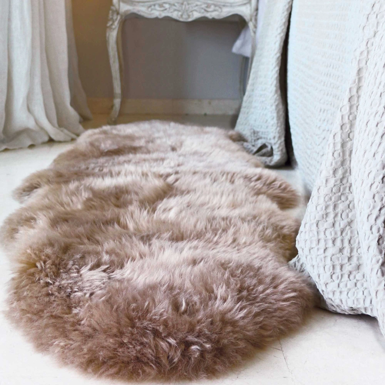 Create a cosy atmosphere in any room of your home with this luxurious, extra long, mink, sheepskin rug, crafted from the finest 100% natural New Zealand long haired wool. Whether you choose to display the rug in your bedroom or living space, the rug will enrich any interior style and create a welcoming focal piece in your room.