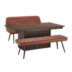 Andria 180cm Dining Table With Tan Moretti High Back And Straight Bench