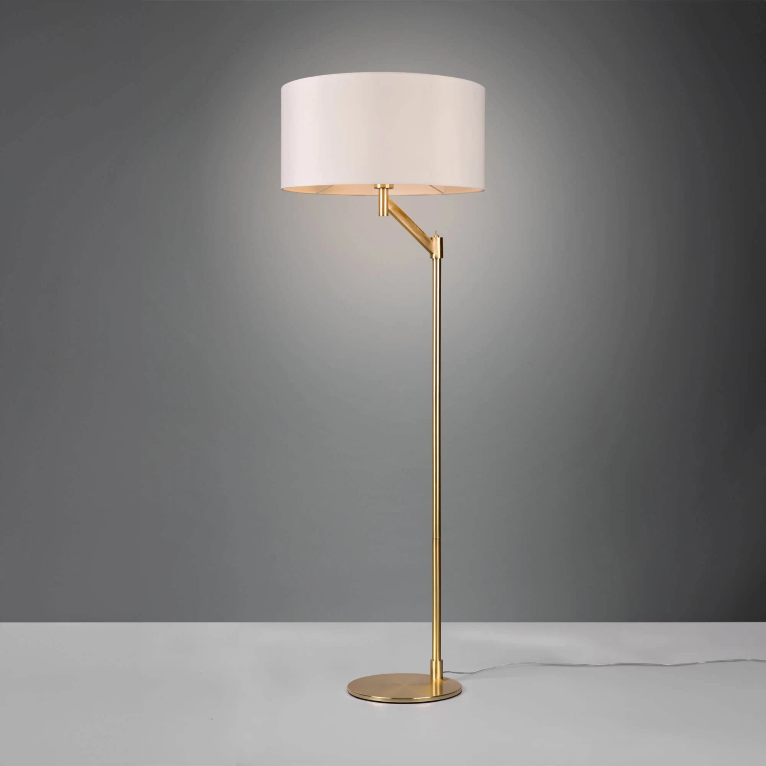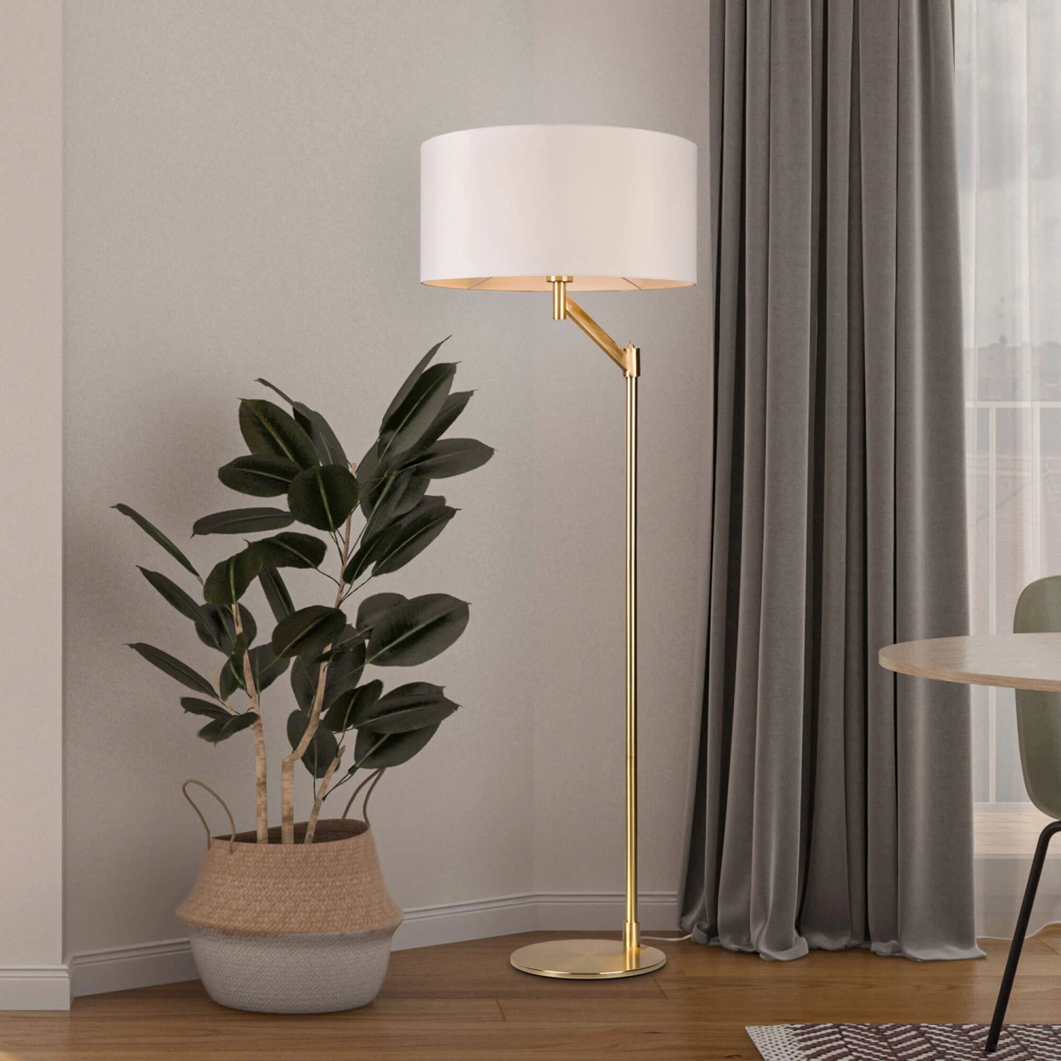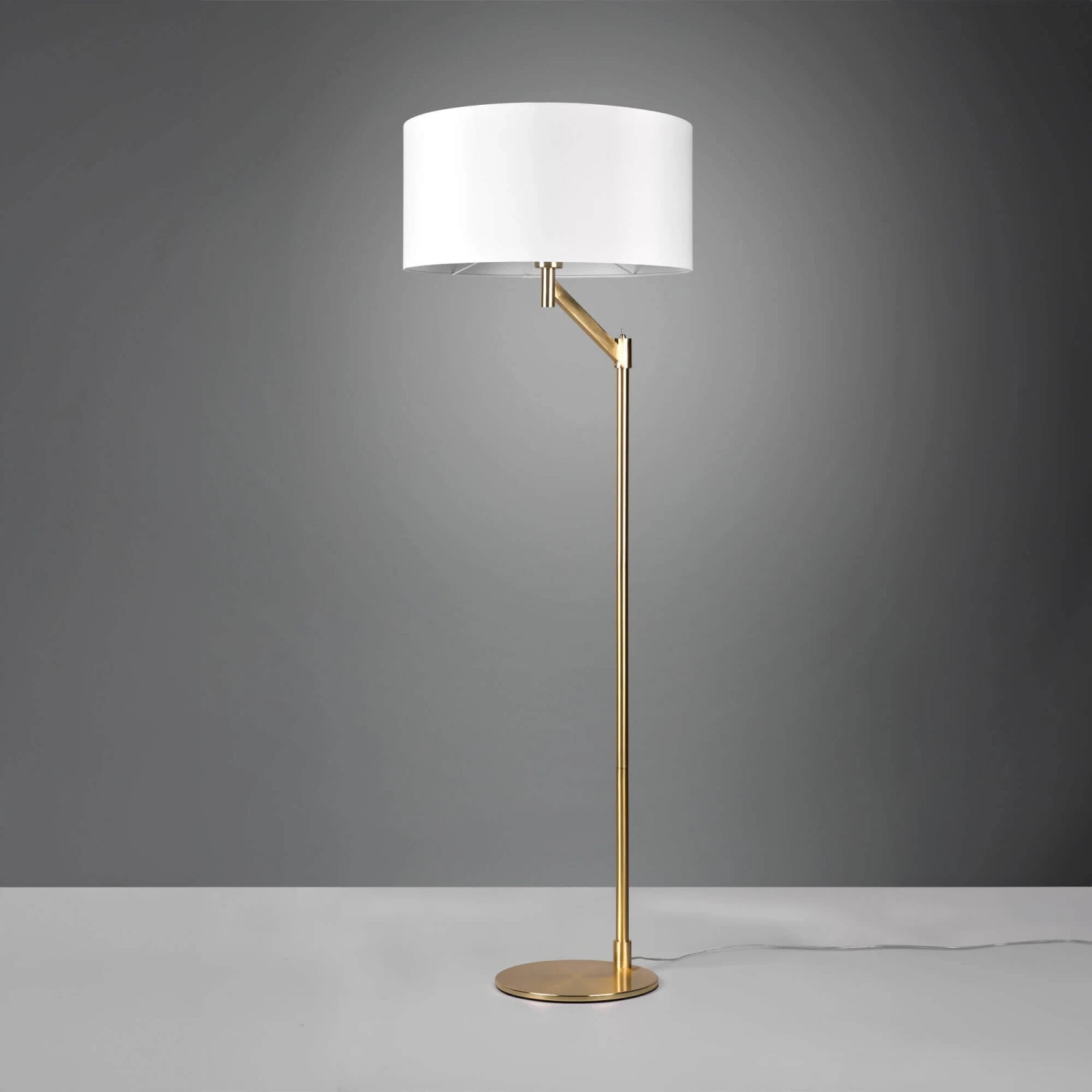 The Sinclair Matt Brass Floor Lamp embraces a simple yet modern style. Illuminable by an E27 LED bulb, this minimalistic floor lamp features a charming white textile fabric shade on a stylish matt brass metal base, gently providing an atmospheric and cosy ambience while creating decorative accents in any room. Available in two colours, this sophisticated floor lamp is operated by a convenient on and off switch and is perfect for adding a pleasant yet subtly luxurious touch to any interior.