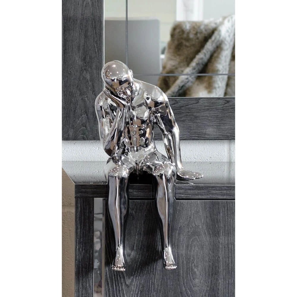 This eye-catching decorative accessory is made of chrome plated ceramic and is designed to sit on a shelf, mantle or sideboard. The Sitting Thinker is sure to add an elegant touch and an interesting statement piece to any room.